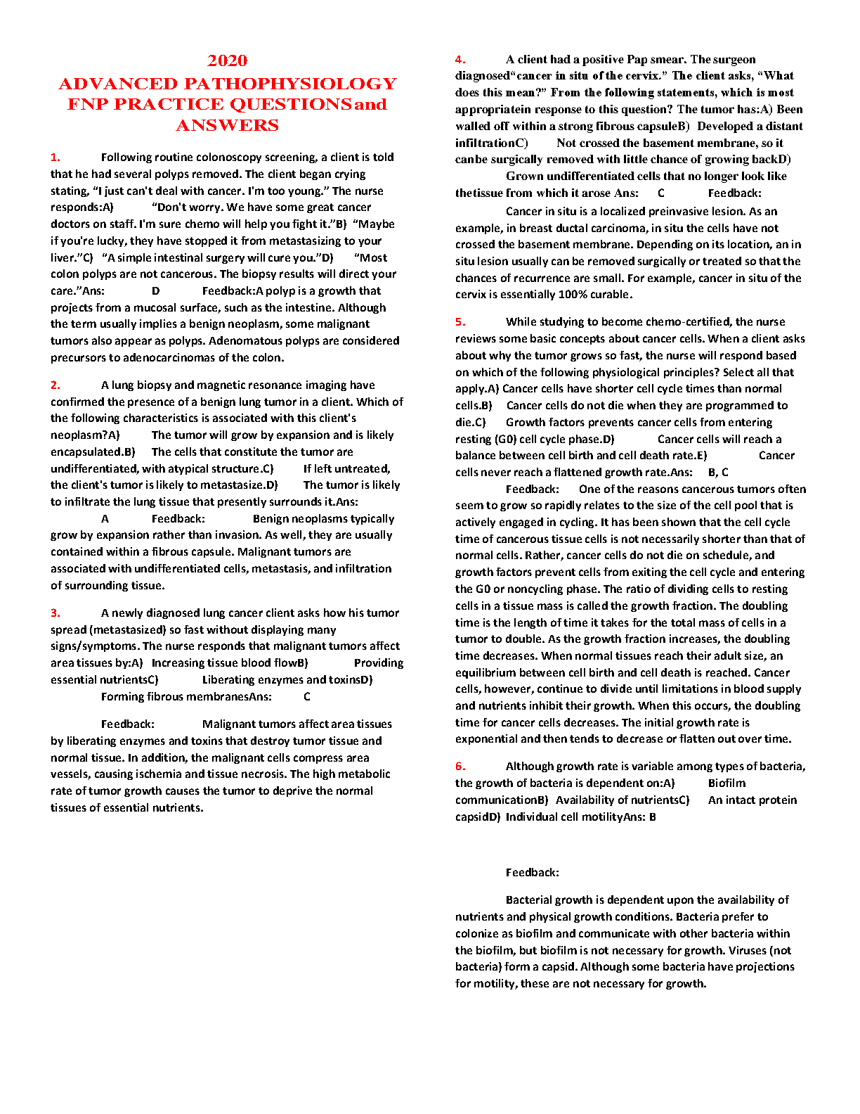 ADVANCED PATHOPHYSIOLOGY FNP PRACTICE QUESTIONS and ANSWERS UPDATED 2023. DOWNLOAD on www.hackedexams.com INSTANTLY.