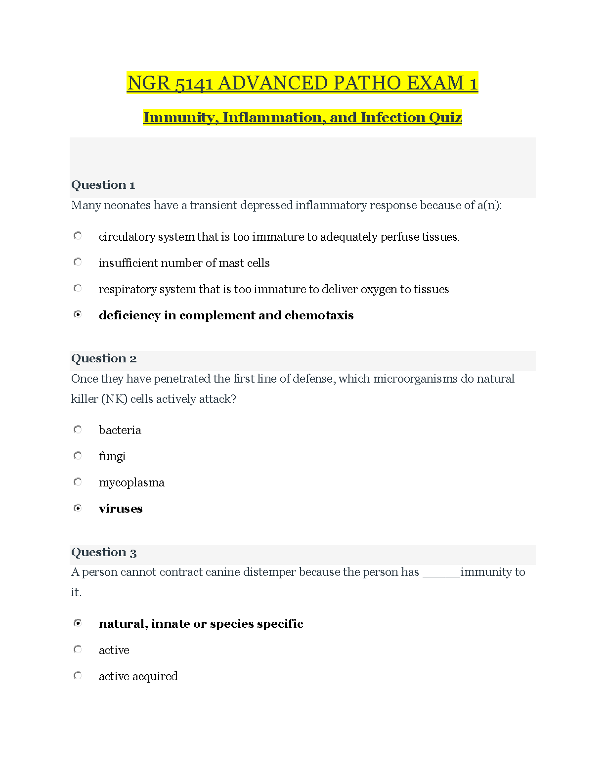 NGR 5141 ADVANCED PATHO EXAM 1 Immunity, Inflammation, and Infection Quiz 2023. DOWNLOAD on www.hackedexams.com INSTANTLY.
