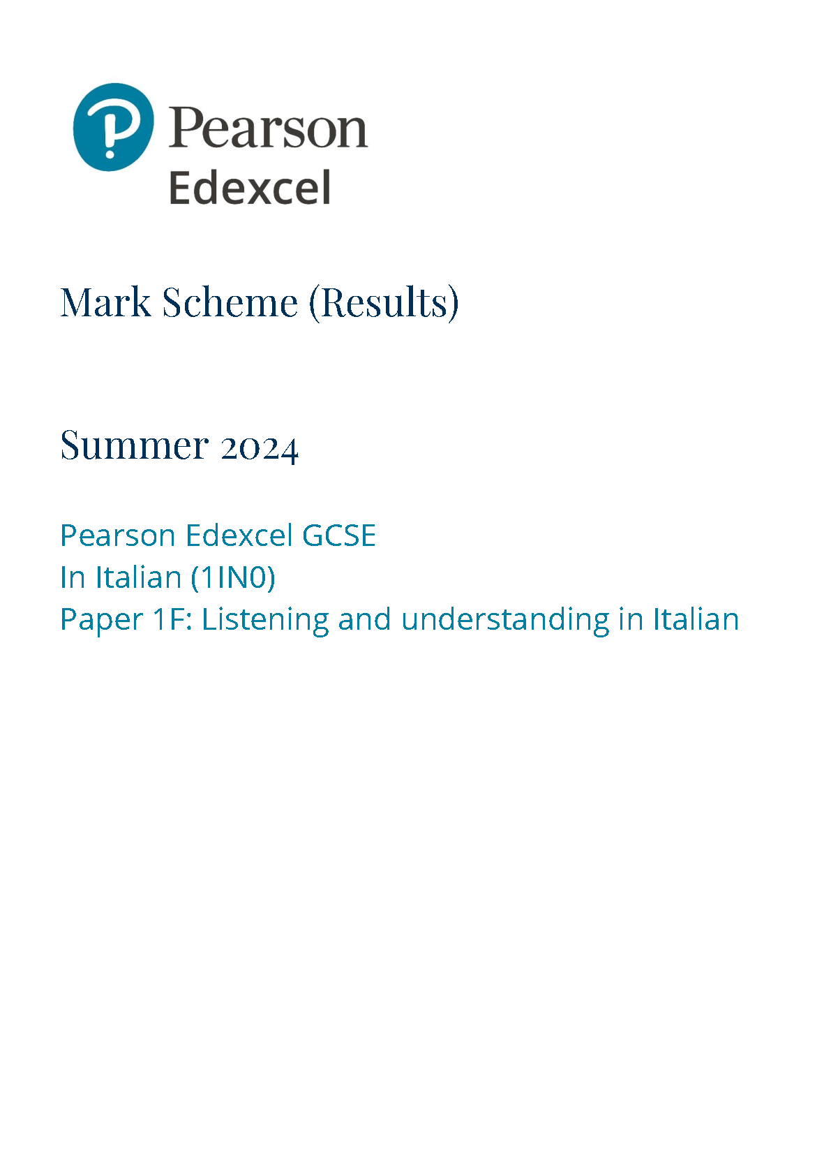 2024 PEARSON EDEXCEL GCSE ITALIAN MARK SCHEME PAPER 1 (1IN0/1F: Listening and understanding in Italian Foundation tier). DOWNLOAD THE OFFICIAL AND VERIFIED ON www.hackedexams.com