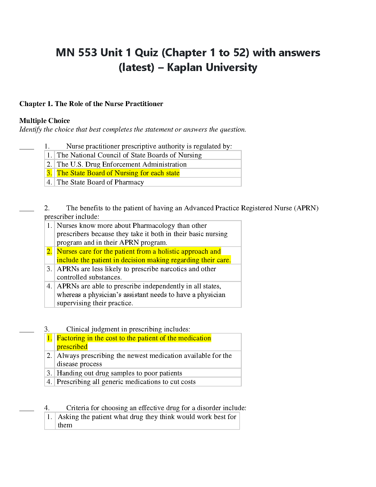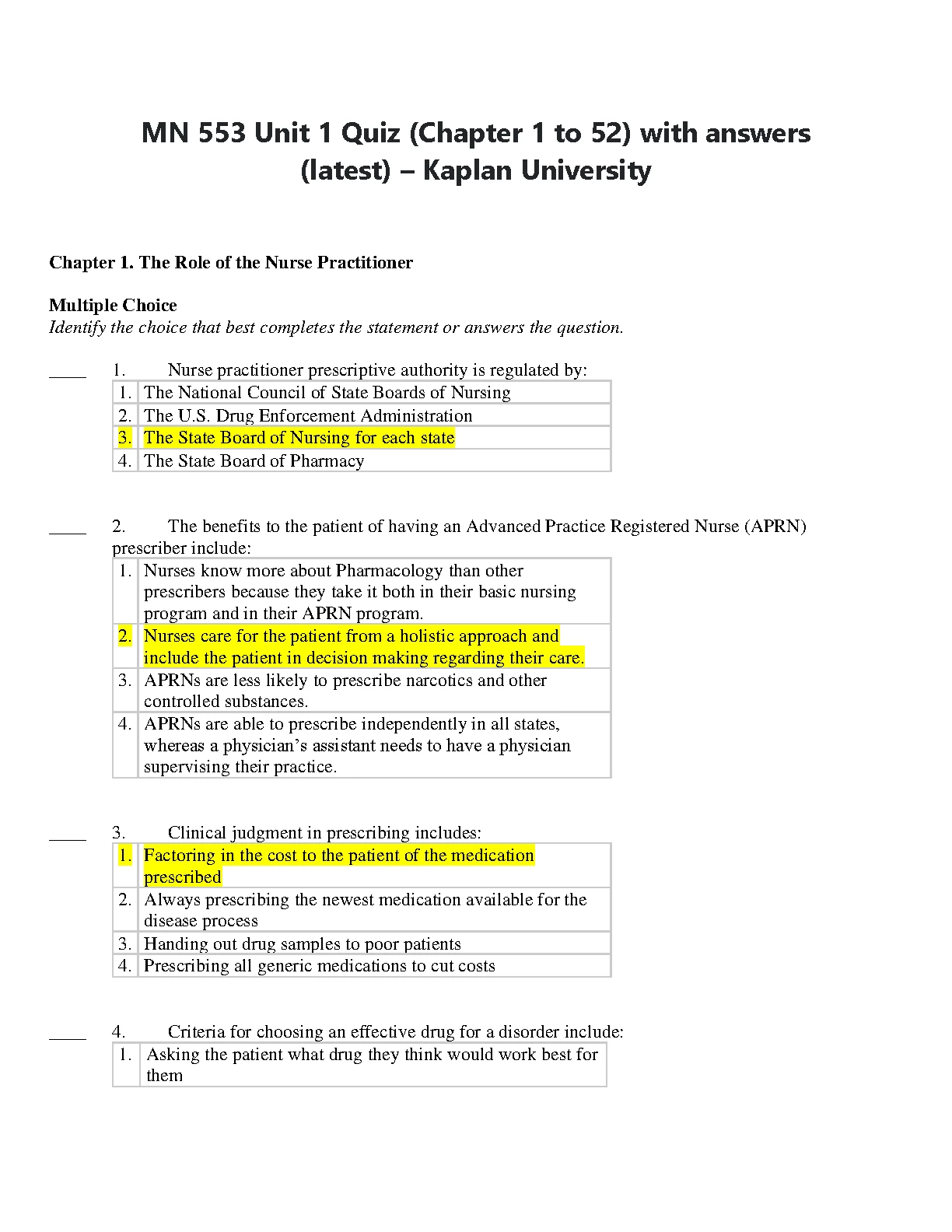 MN 553 Unit 1 Quiz (Chapter 1 to 52) with answers (latest) – Kaplan University BEST RATED SOLUTION 2023/2024