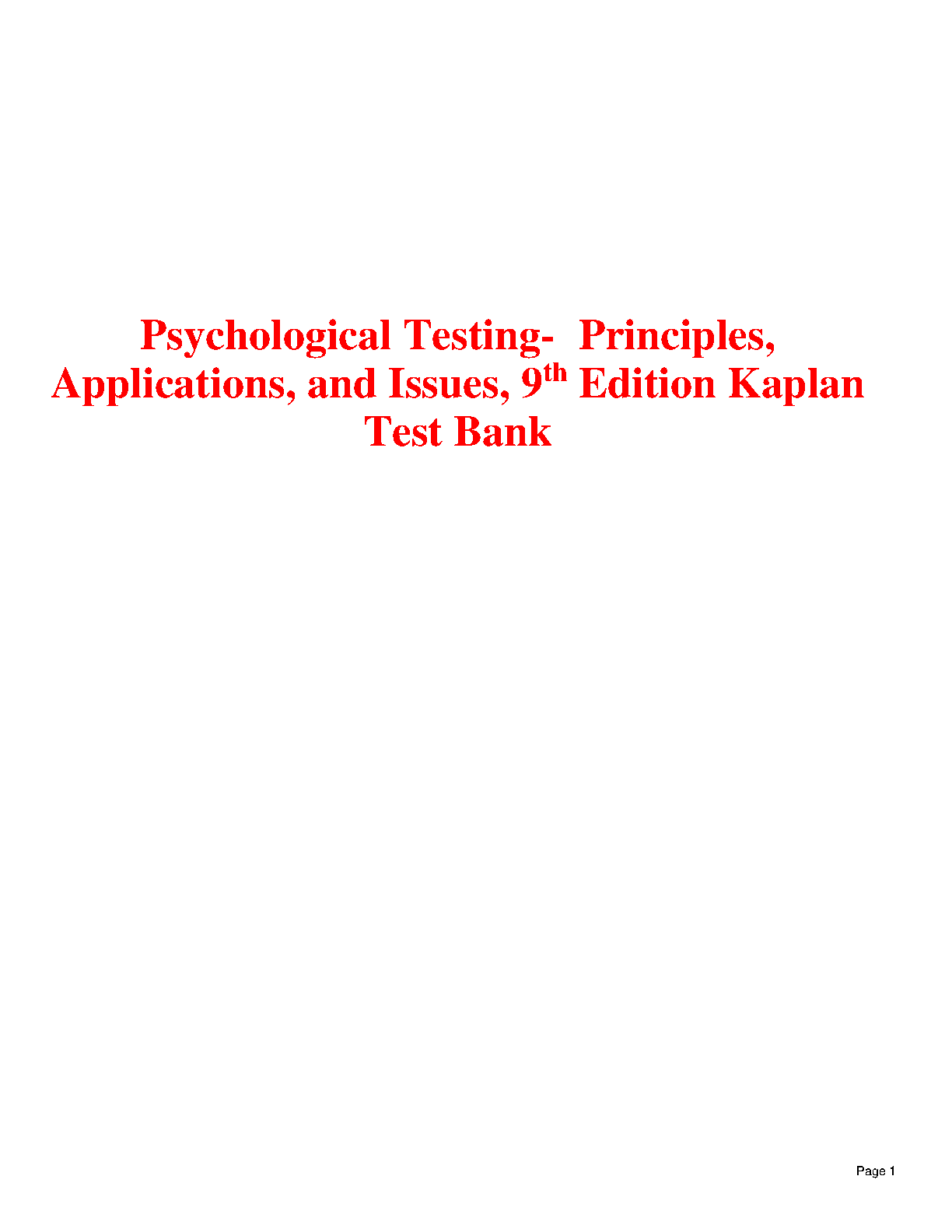 Psychological Testing- Principles, Applications, and Issues, 9 th Edition Kaplan Test Bank 2023/2024. DOWNLOAD on www.hackedexams.com INSTANTLY.