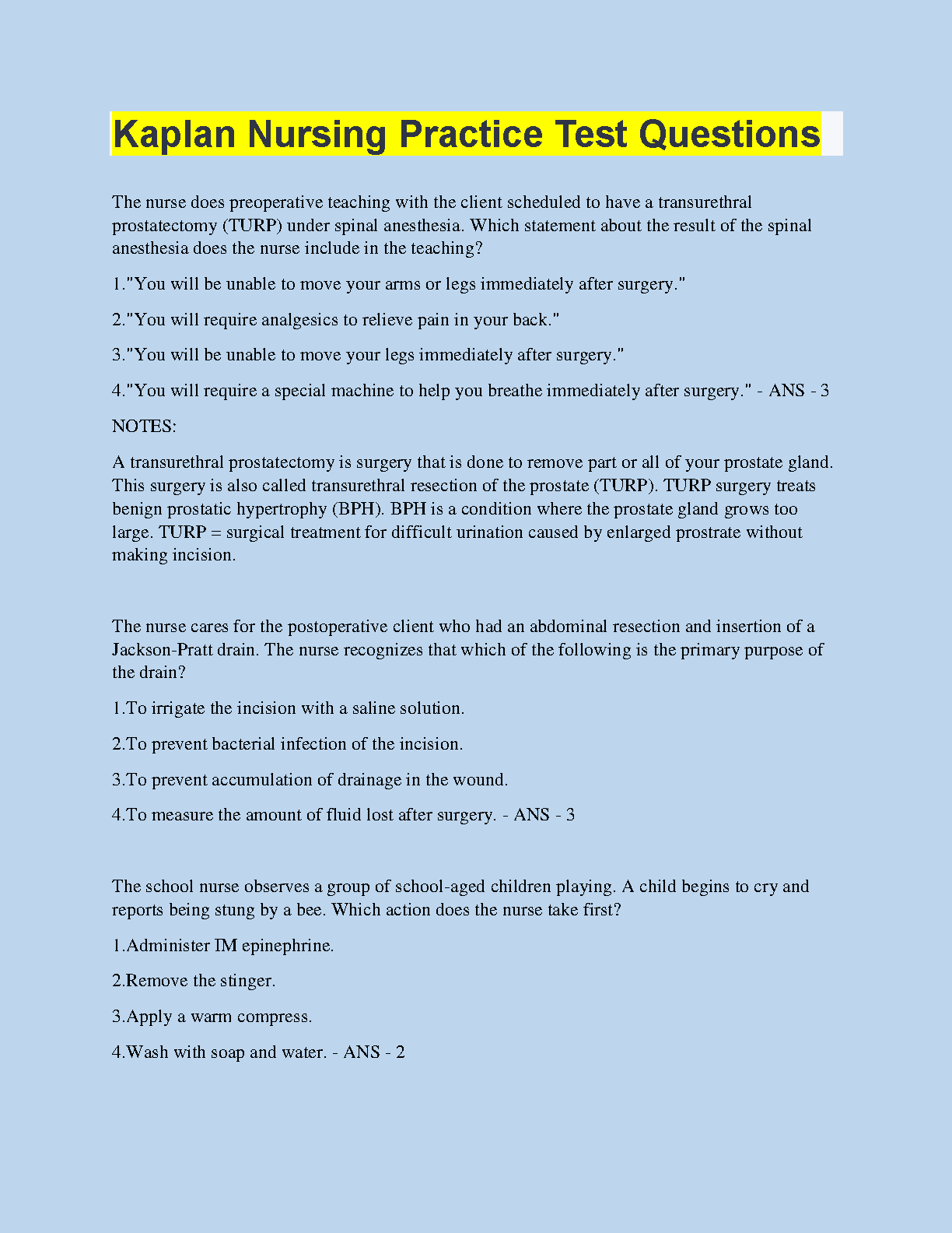 Kaplan Nursing Practice Test Questions WITH CORRECT ANSWERS AND ELABORATIONS 2023. DOWNLOAD on www.hackedexams.com INSTANTLY.