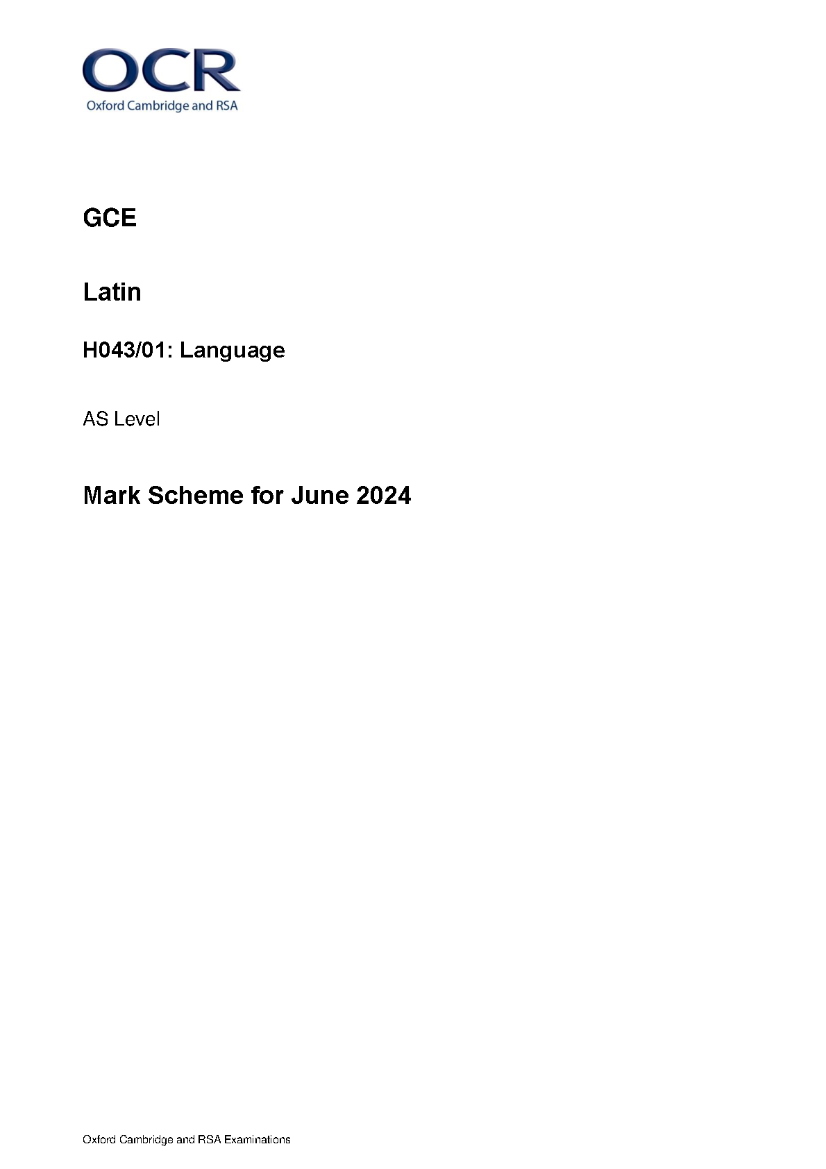 2024 OCR AS LATIN MARK SCHEME PAPER 1 (H043/01: Language).