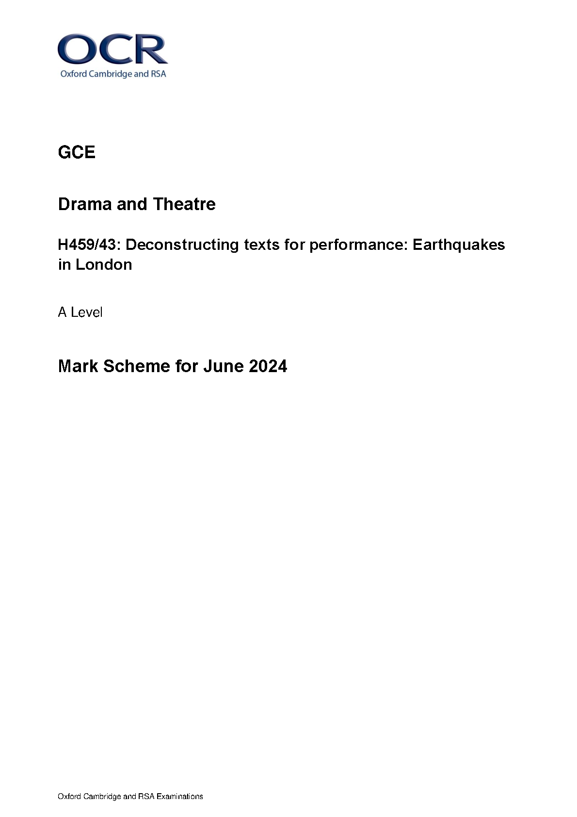 2024 OCR A LEVEL DRAMA AND THEATRE MARK SCHEME PAPER 43 (H459/43: Deconstructing texts for performance: Earthquakes in London).