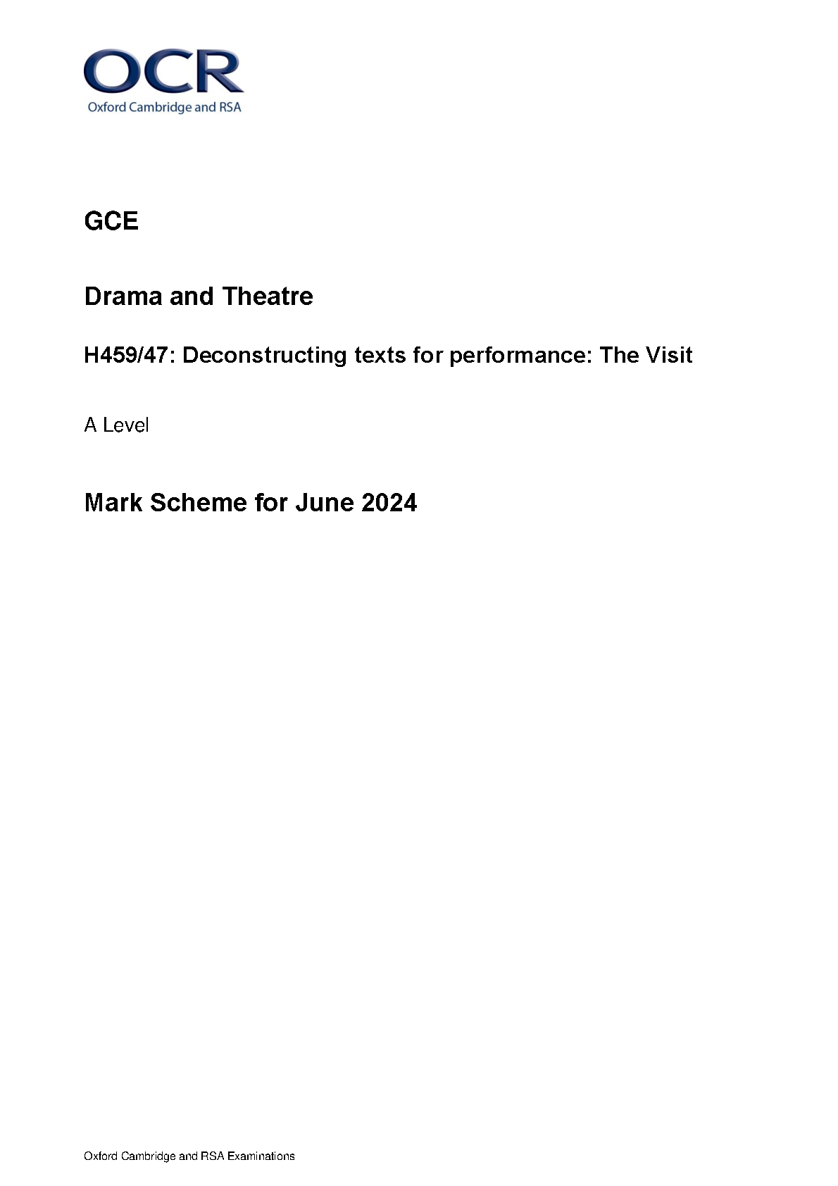 2024 OCR A LEVEL DRAMA AND THEATRE MARK SCHEME PAPER 47 (H459/47: Deconstructing texts for performance: The Visit).