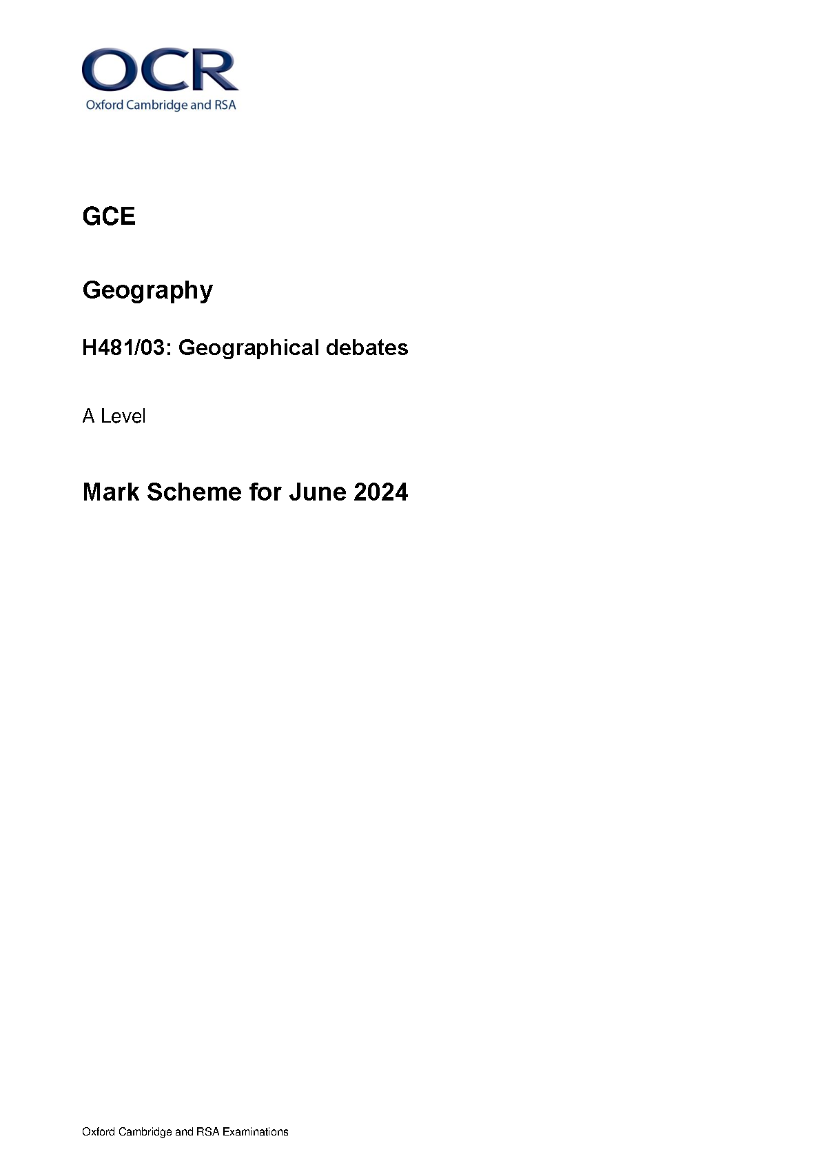 2024 OCR A LEVEL GEOGRAPHY MARK SCHEME PAPER 3 (H481/03: Geographical debates).