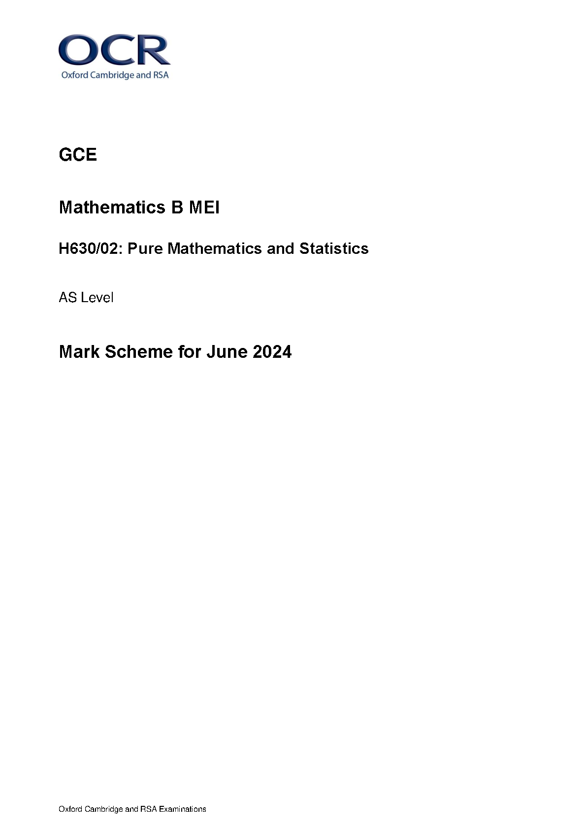 2024 OCR AS MATHEMATICS B MEI MARK SCHEME PAPER 2 (H630/02: Pure Mathematics and Statistics).