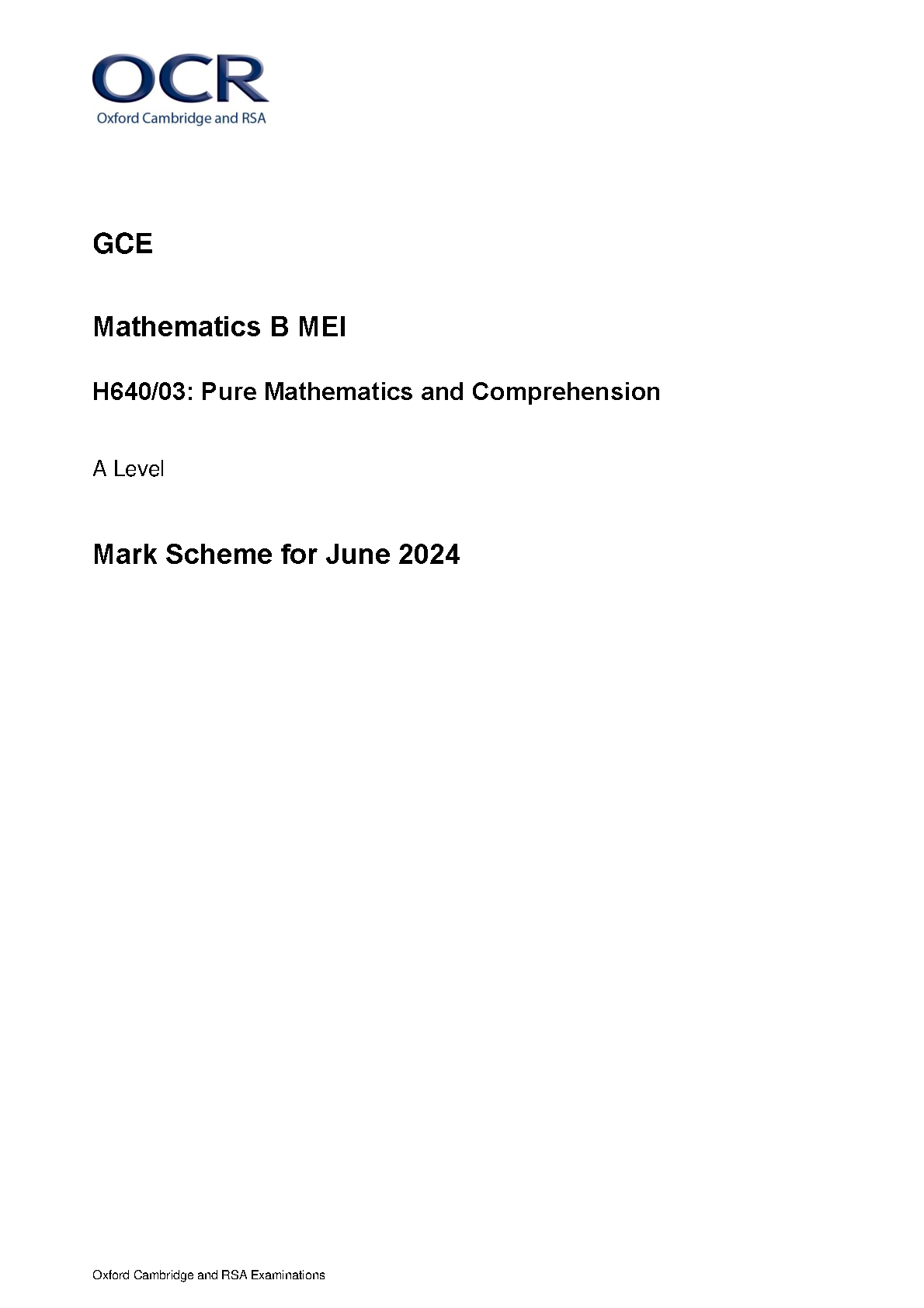2024 OCR A LEVEL MATHEMATICS B MEI MARK SCHEME PAPER 3 (H640/03: Pure Mathematics and Comprehension).