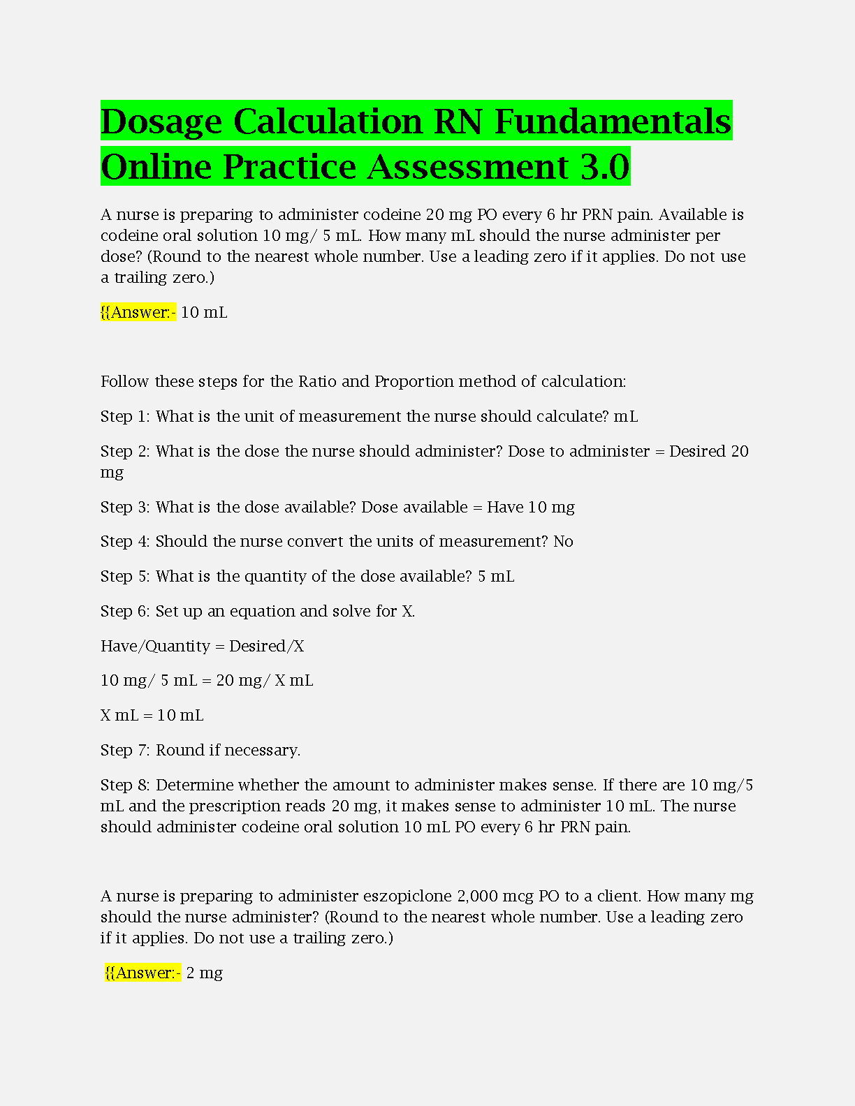 Dosage Calculation RN Fundamentals Online Practice Assessment 3.0 - Master Nursing Math with This Essential Resource