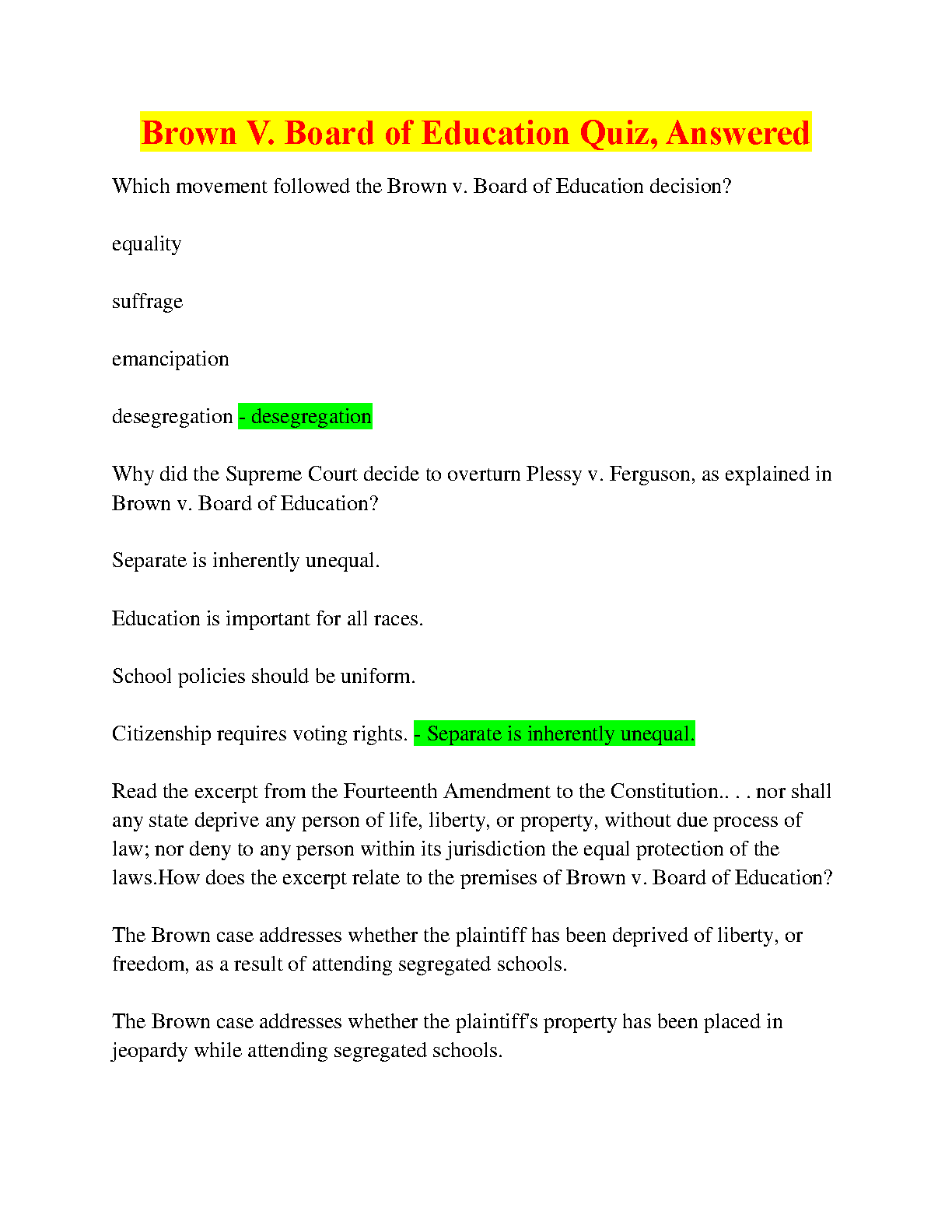 Brown v. Board of Education Quiz, Answered: A Comprehensive Guide to Understanding Desegregation