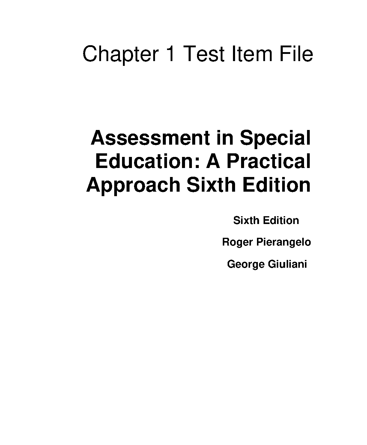 Assessment in Special Education: A Practical Approach Sixth Edition by Roger Pierangelo and George Giuliani Test Item File
