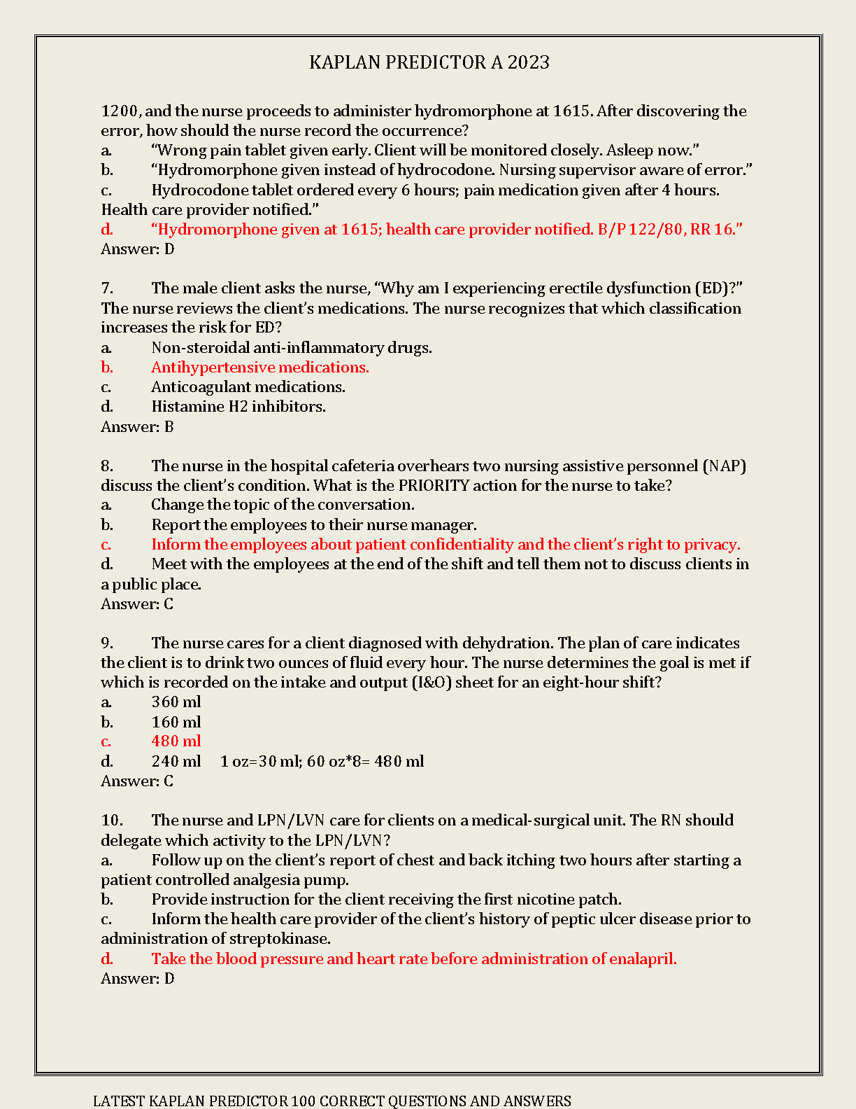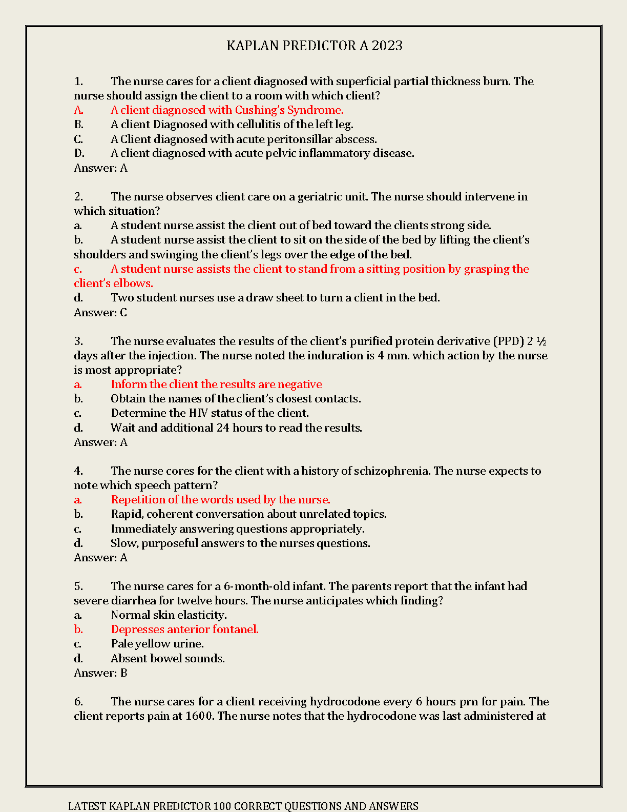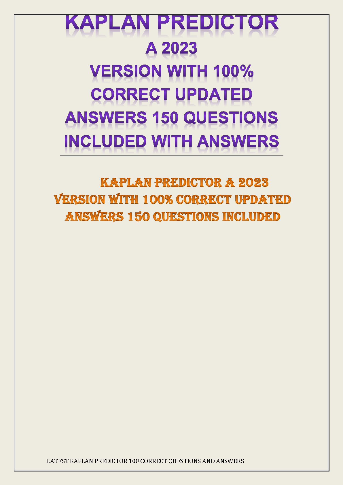 Kaplan Predictor A 2023 - Updated Version with 100% Correct Answers and 150 Questions
