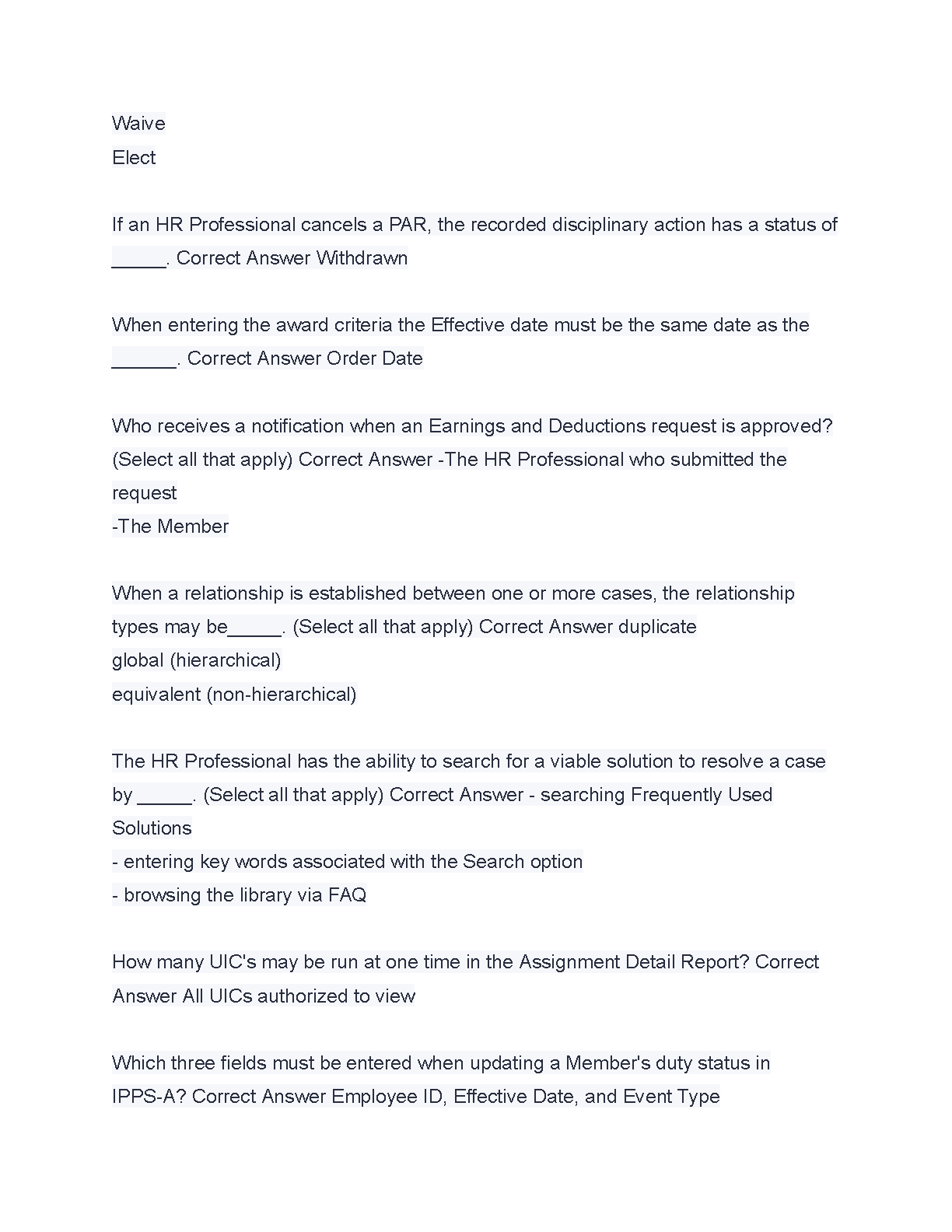 Ace your HR Professional / Payroll Specialist exam on your first attempt! This comprehensive study guide contains verified answers for all the practice questions you need to know for the IPPS-A DL final exam.