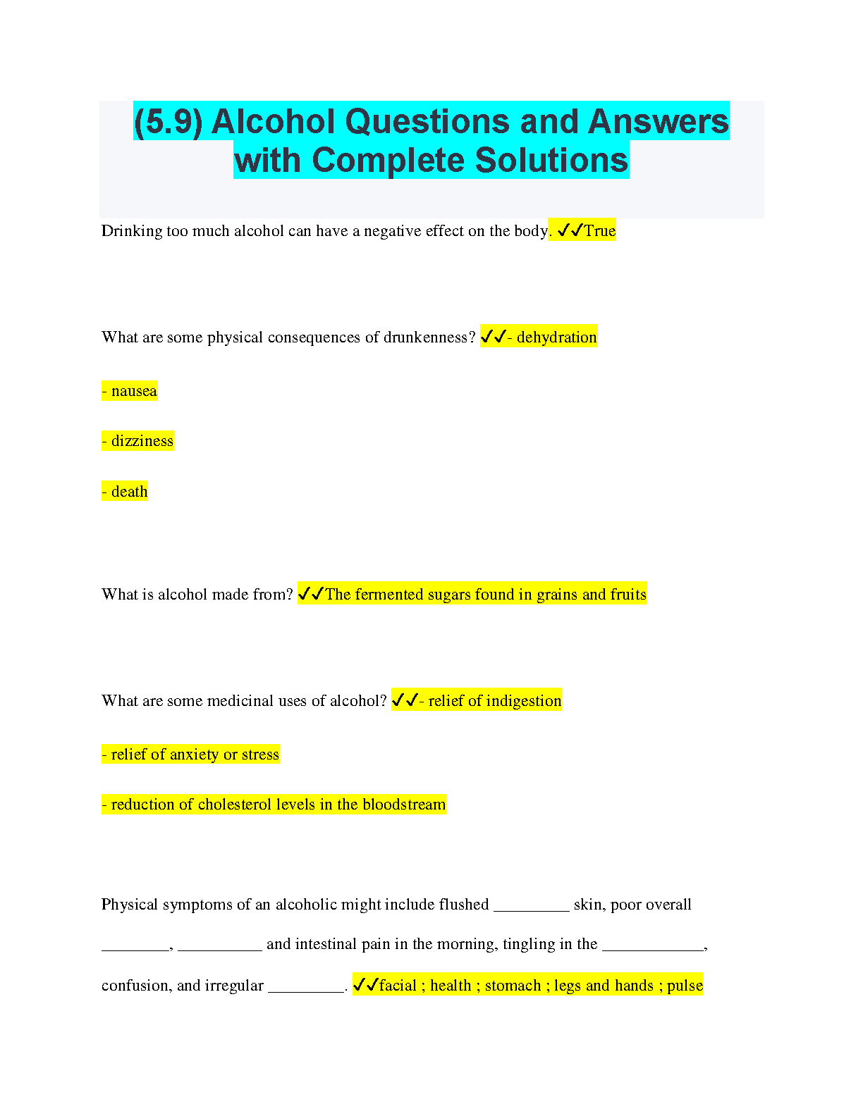 Alcohol Questions and Answers with Complete Solutions for 2024/2025 Academic Year: Ace Your Exams on the First Attempt