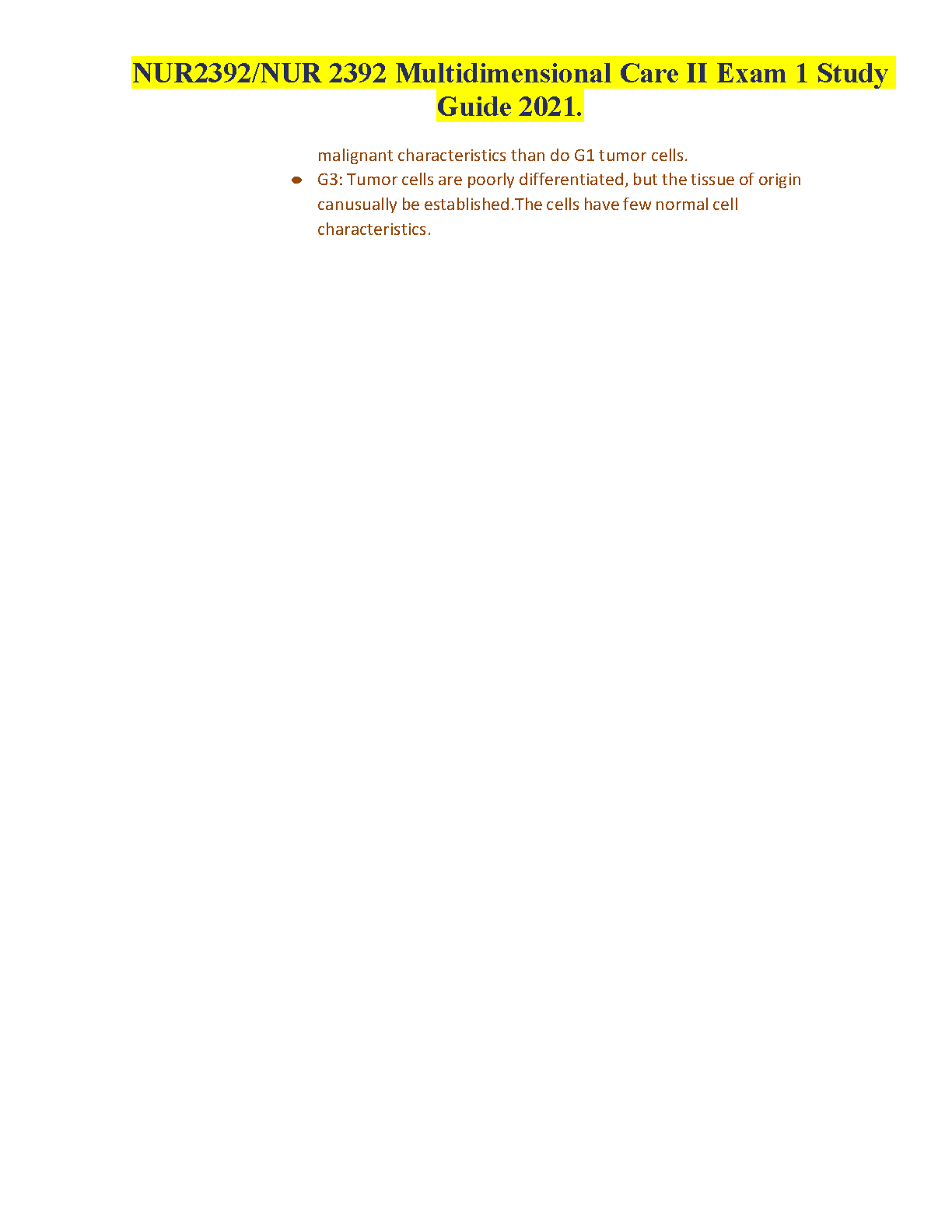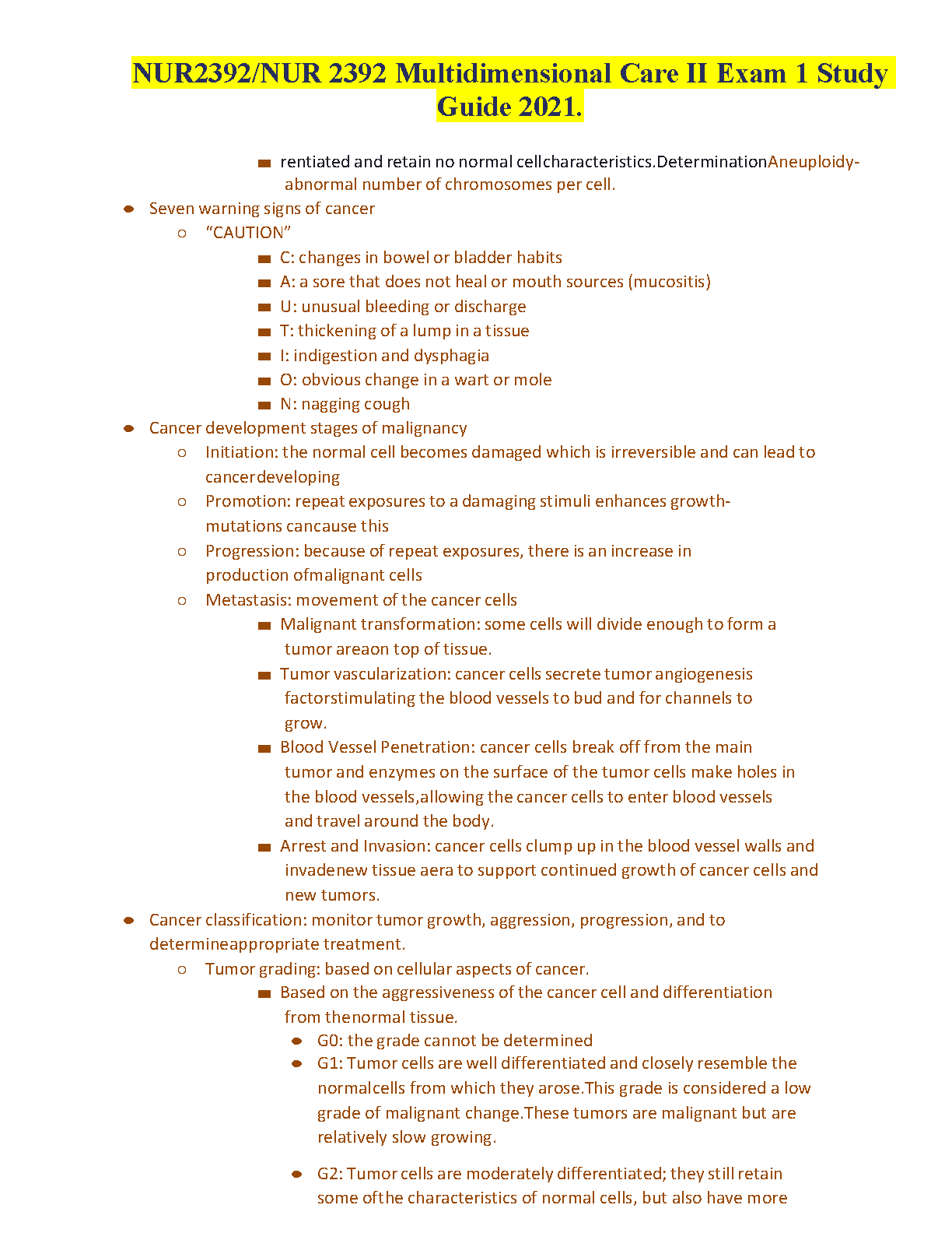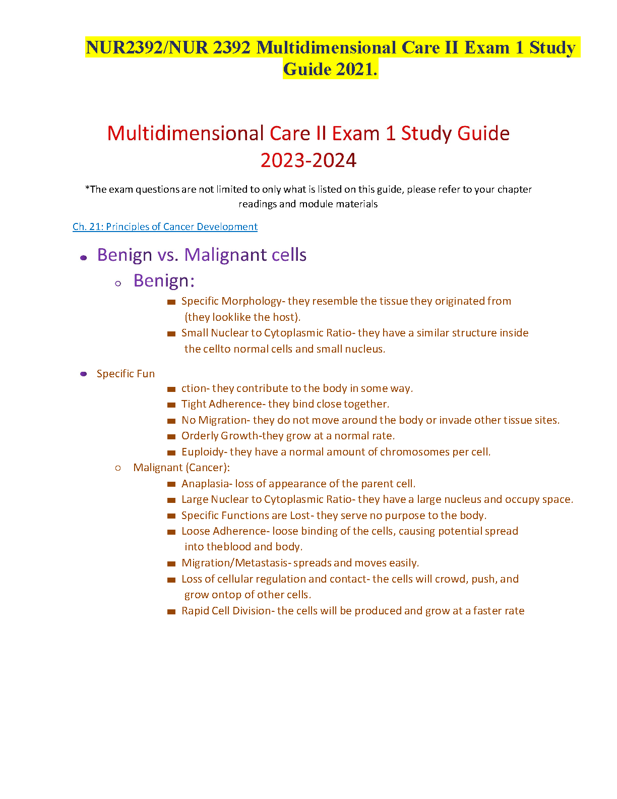 NUR 2392/NUR 2392 Multidimensional Care II Exam 1 Study Guide 2023-2024: Ace Your First Attempt and Avoid Resits