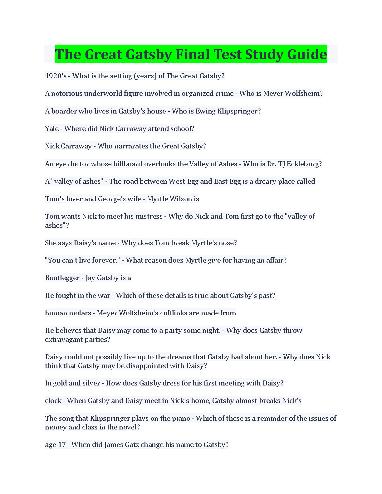 Get ready to ace your The Great Gatsby final test with this comprehensive study guide, designed for the 2024/2025 academic year. Our study guide includes detailed chapter summaries, insightful analysis of key characters and themes, and practice test questions to ensure you're fully prepared. Avoid resits and pass your exam with flying colors.