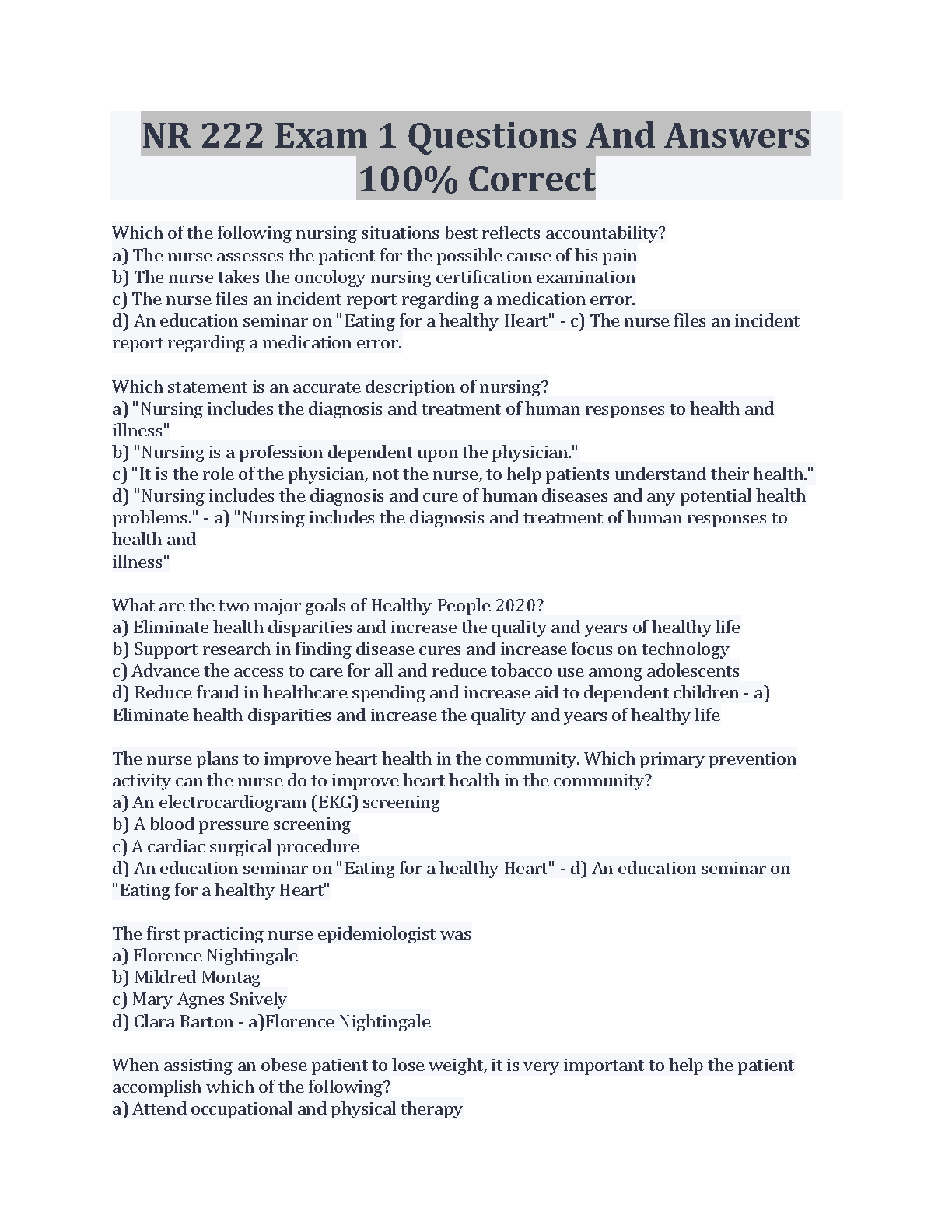 NR 222 Exam 1 Questions And Answers 100% Correct - 2024/2025 Edition