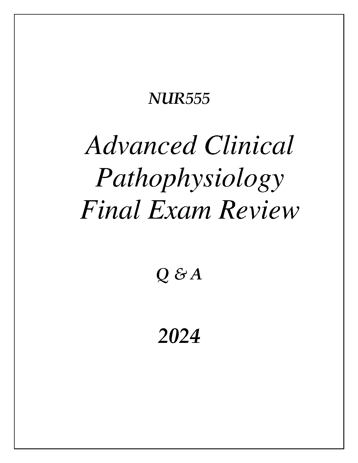 NUR555 Advanced Clinical Pathophysiology Final Exam Review Q&A 2024, This resource contains questions and answers designed to help students master the key concepts covered in the NUR555 course. Prepare for your final exam with confidence and ace your exam on the first attempt.