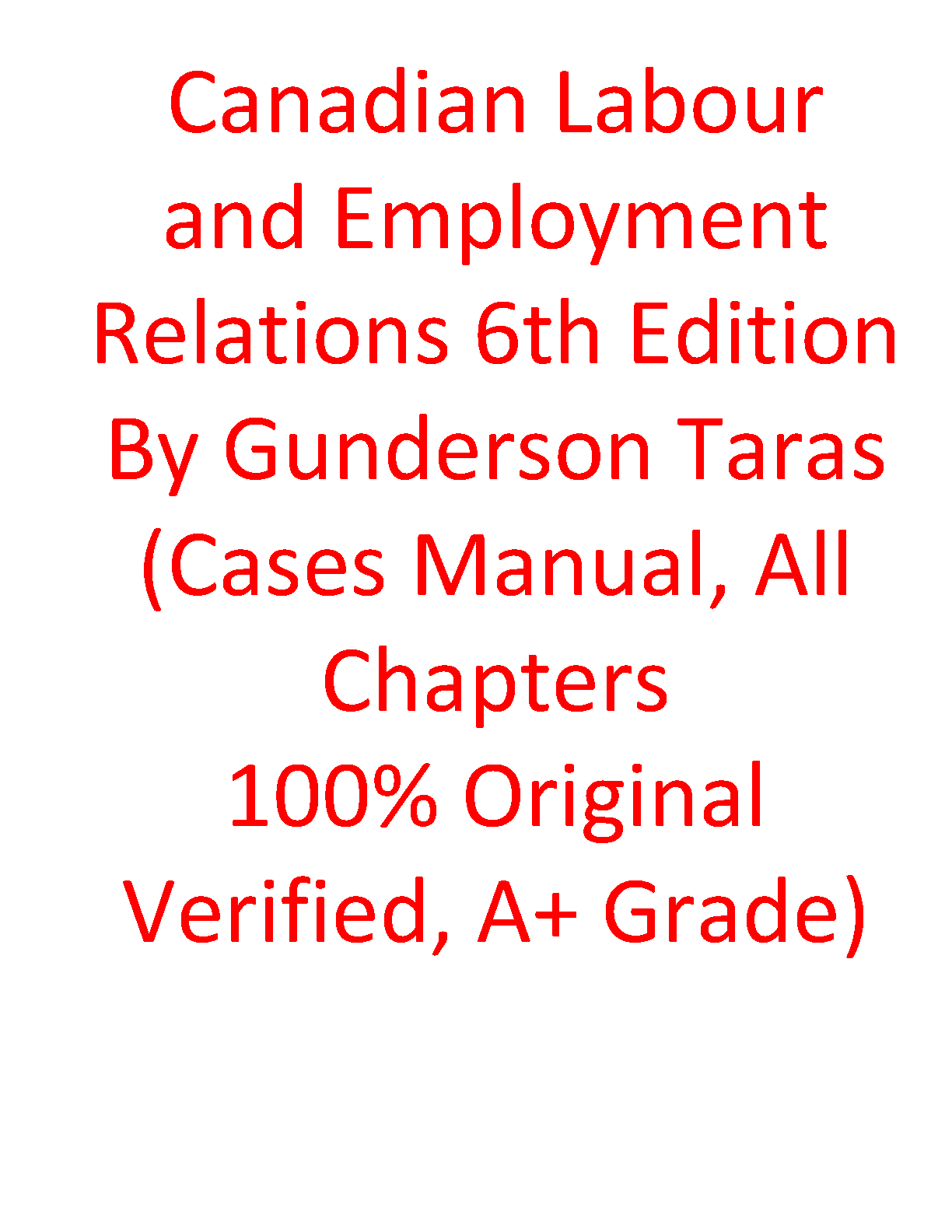 Canadian Labour and Employment Relations 6th Edition by Gunderson, Taras - Cases Manual, All Chapters - 100% Original Verified A+ Grade