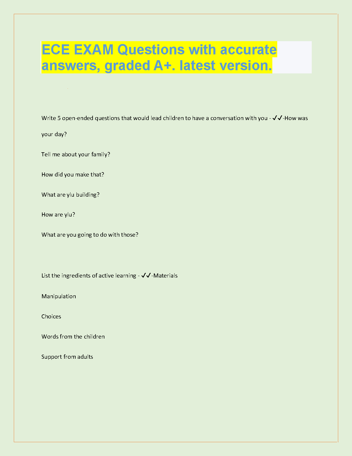 Get ready to conquer your ECE Exam 1 with this comprehensive set of practice questions and answers. This resource is designed to help you master the key concepts and skills, ensuring a smooth and successful exam experience.