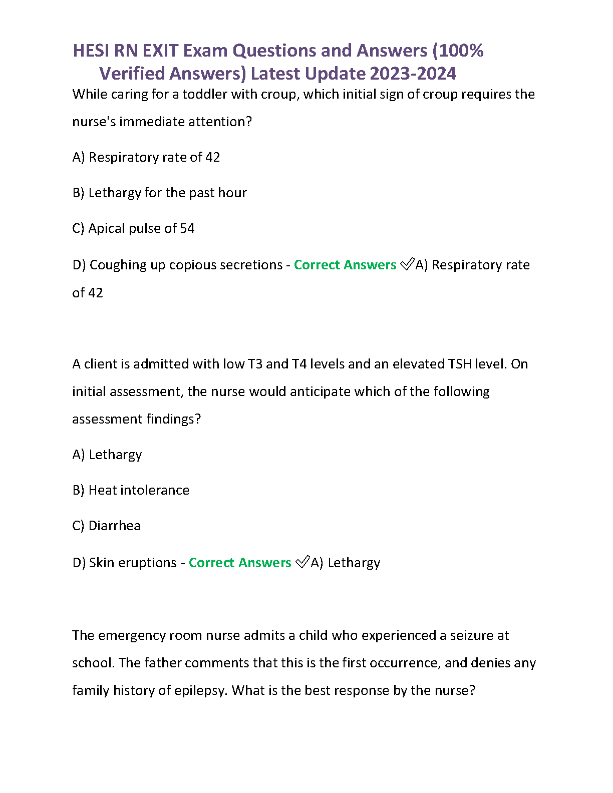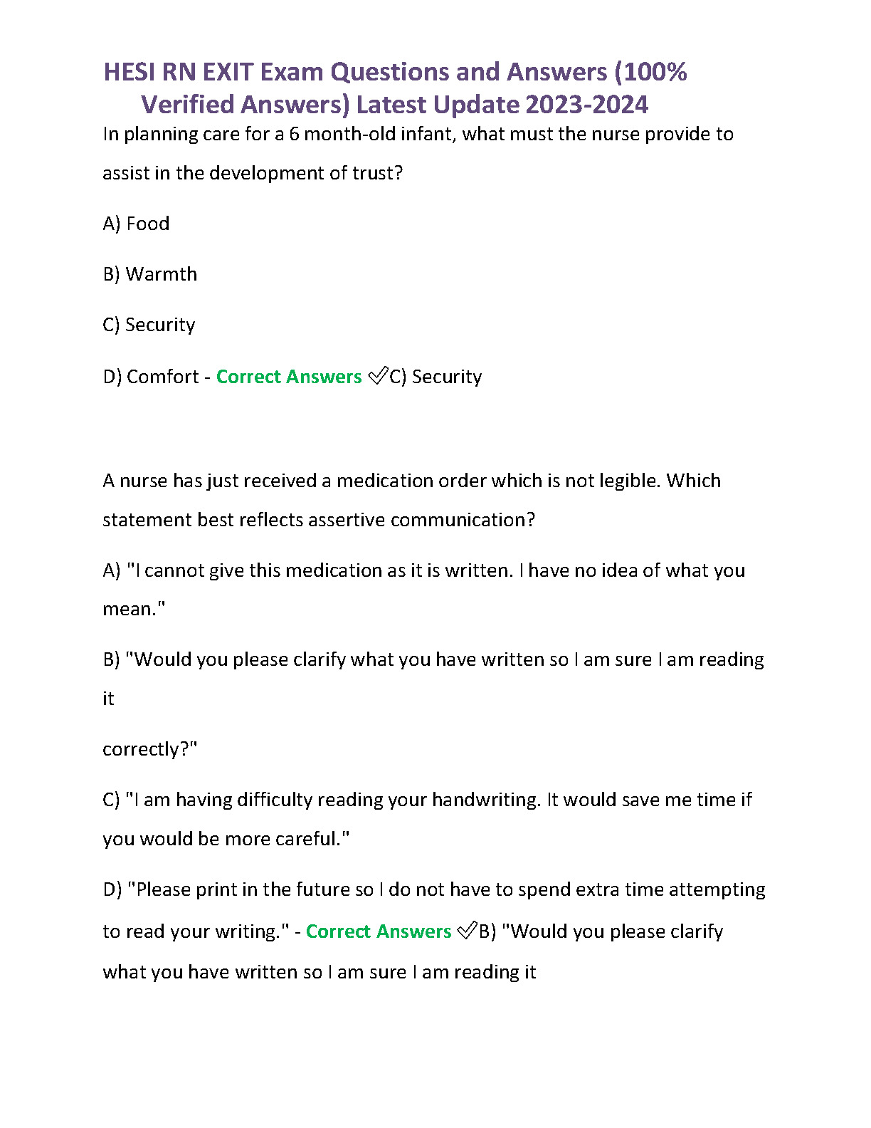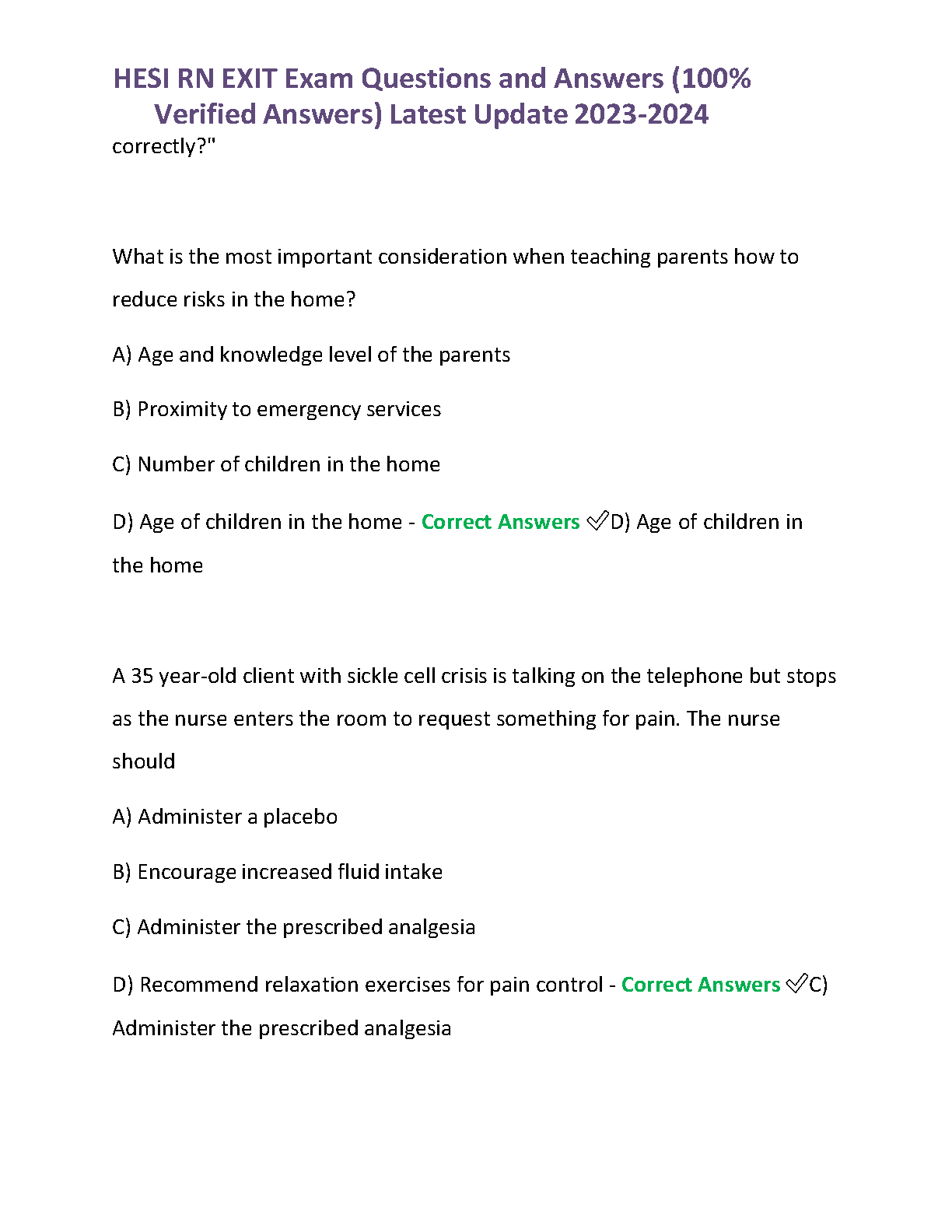 HESI RN EXIT Exam Questions and Answers (100% Verified Answers) Latest Update 2023-2024