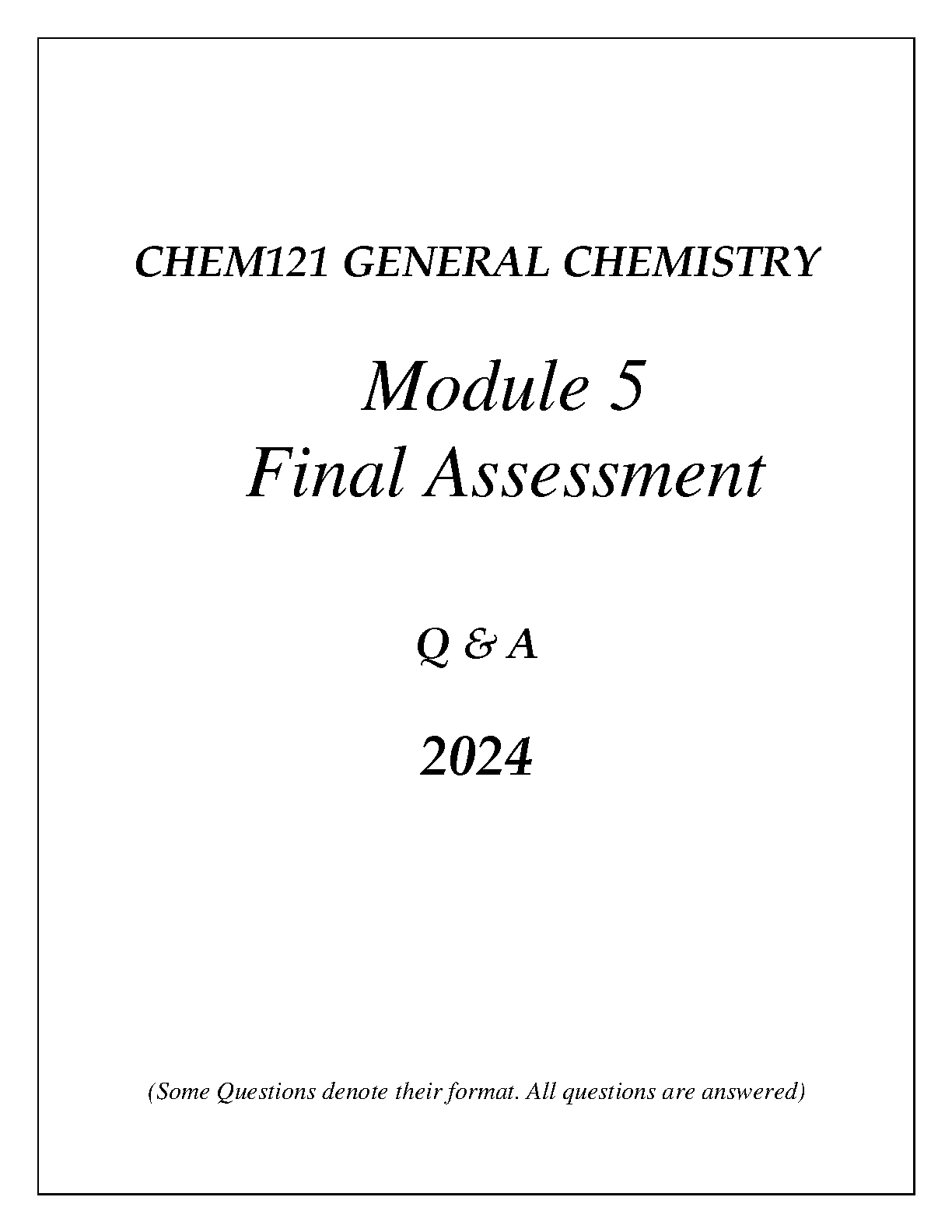 CHEM121 General Chemistry Module 5 Final Assessment Q&A 2024
