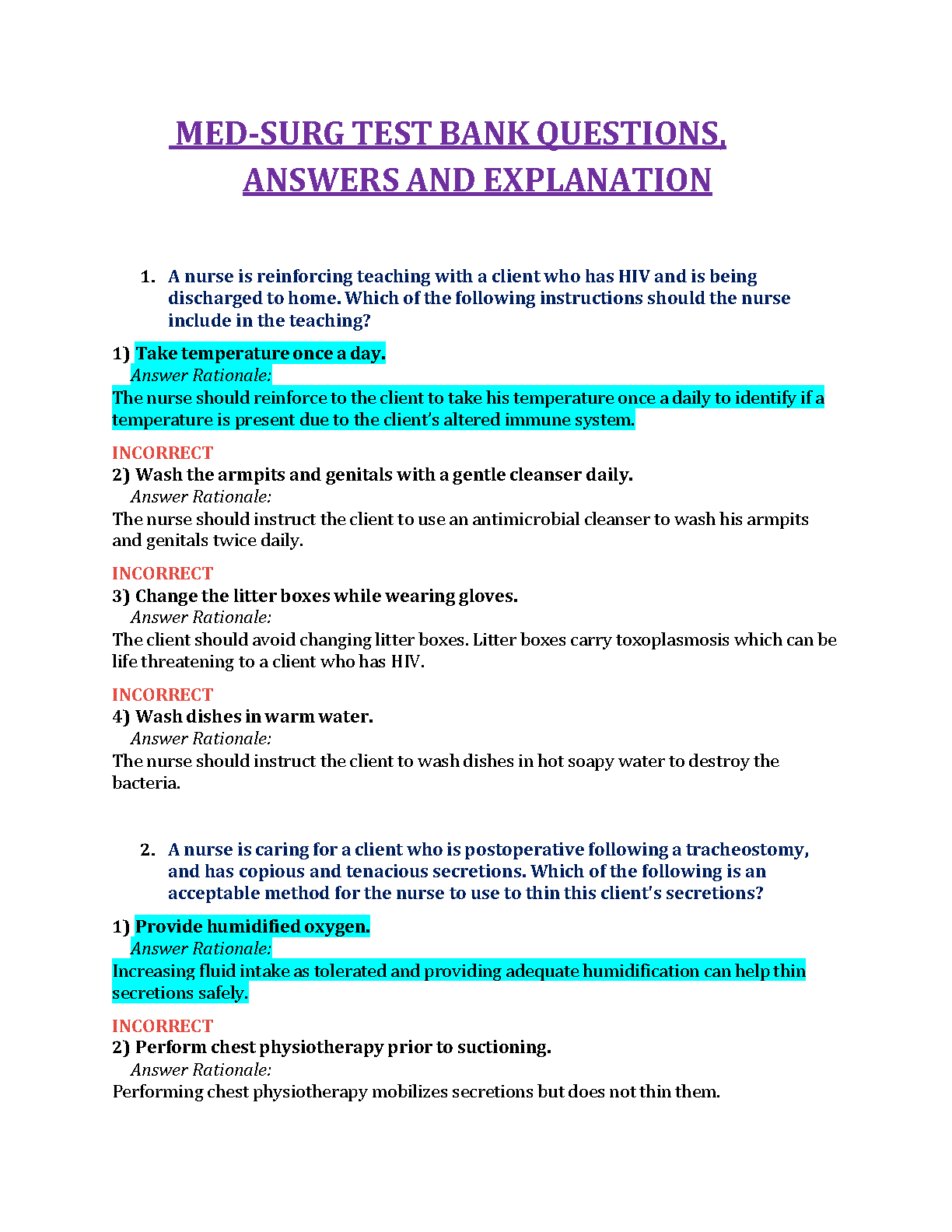 Med-Surg Test Bank Questions Answers and Explanation for 2024/2025