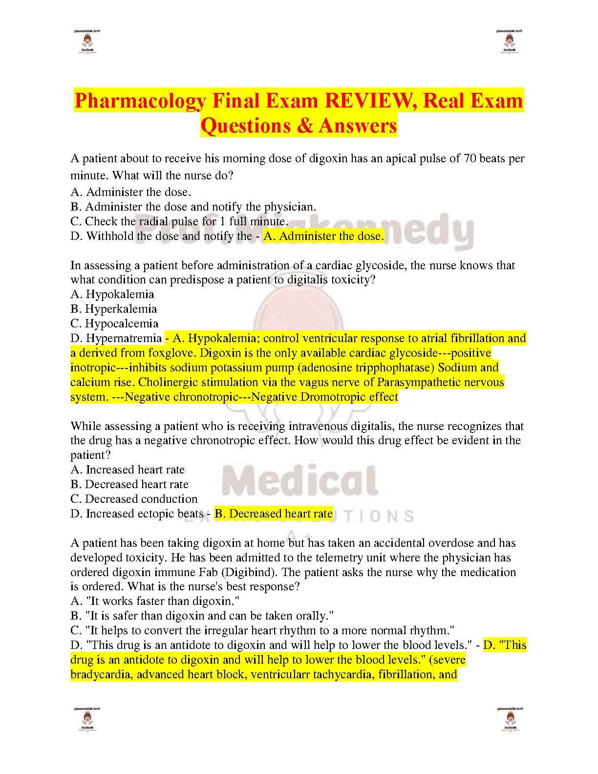 Ace your Pharmacology final exam with this comprehensive study guide. Packed with real exam questions and answers, this resource helps you master key concepts and avoid resits.