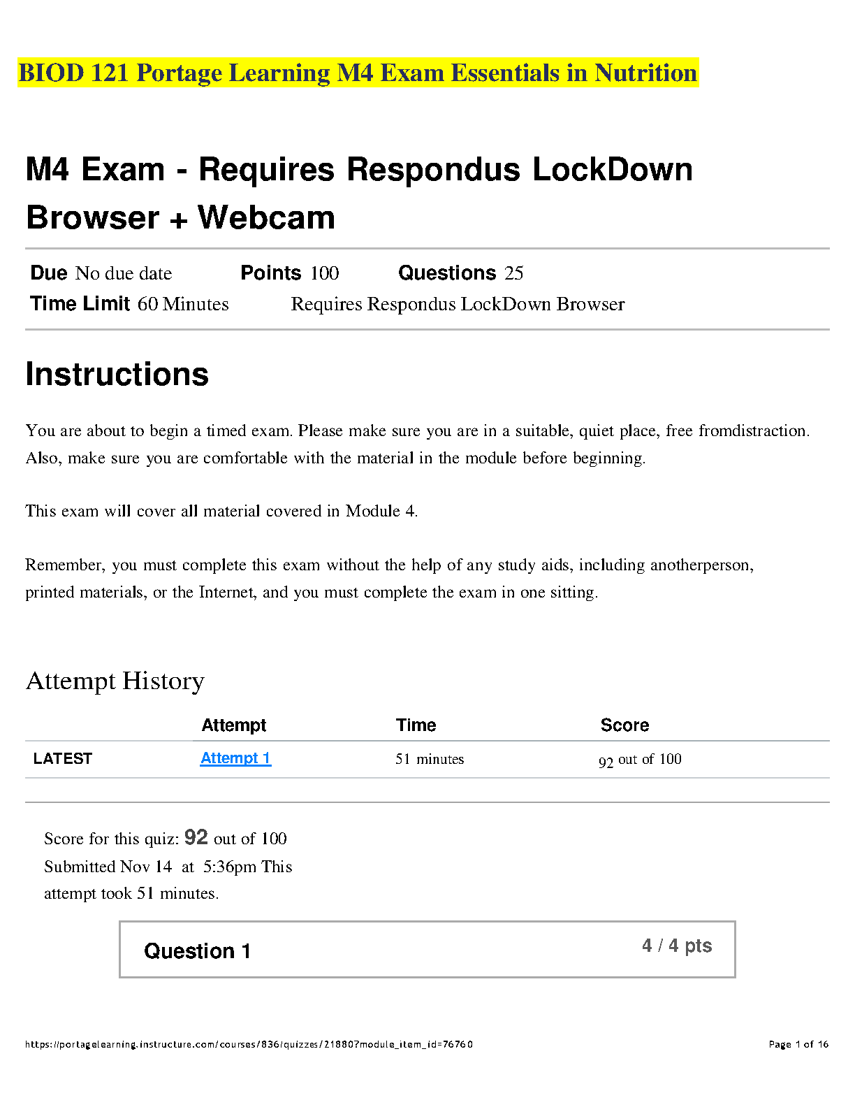 BIOD 121 Portage Learning M4 Exam Essentials in Nutrition - Ace Your Exam on the First Attempt!