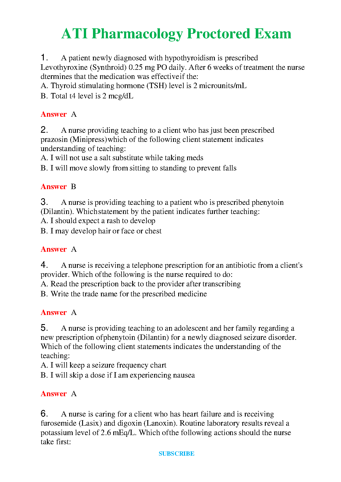 ATI Pharmacology Proctored Exam Study Guide for Nursing Students - Pass Your Exam on the First Attempt!