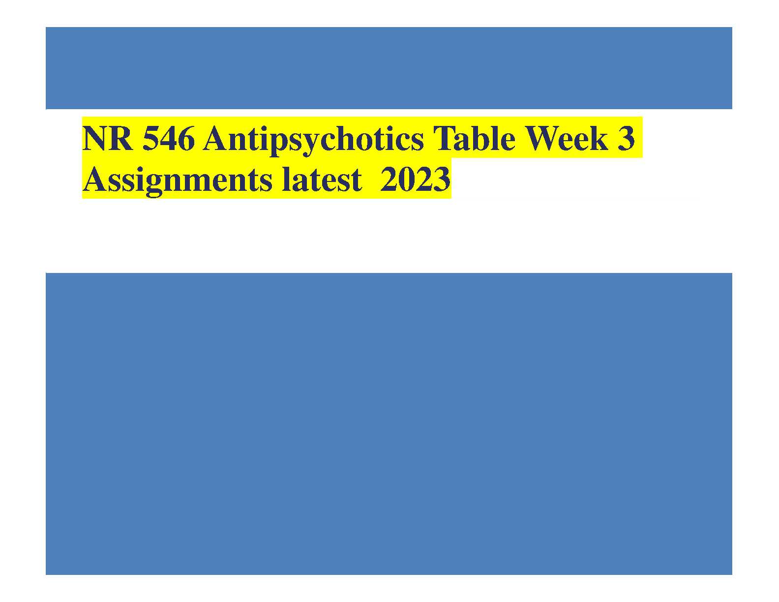 NR 546 Antipsychotics Table Assignments for 2024/2025 - Ace Your Exams on the First Attempt