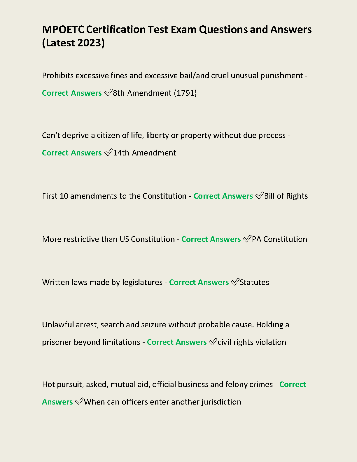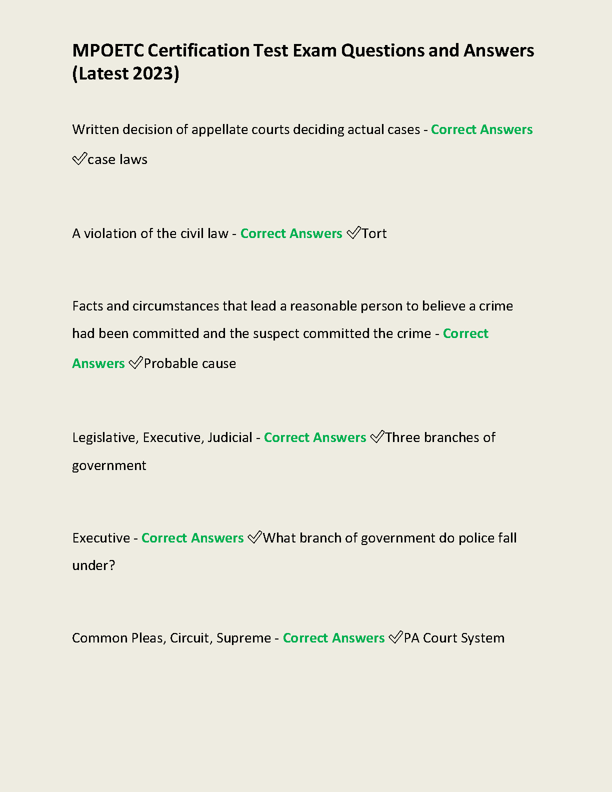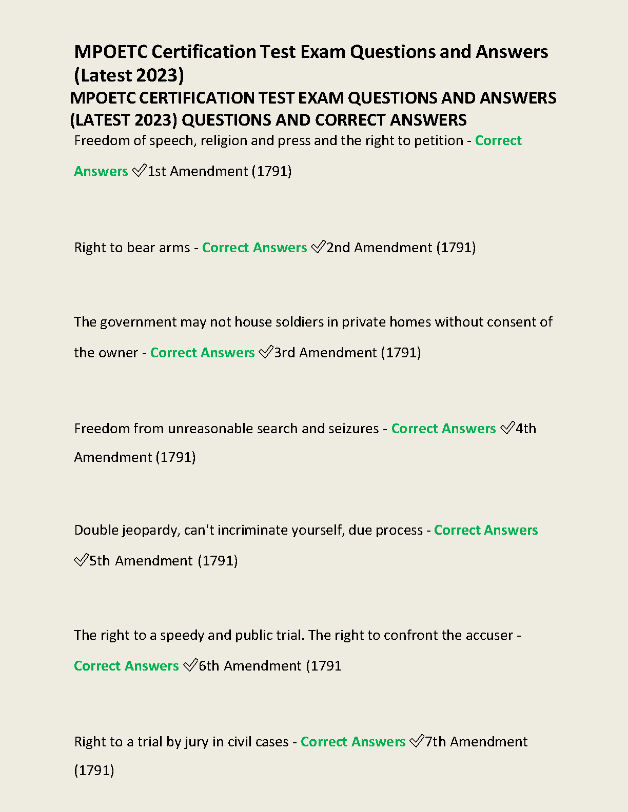 MPOETC Certification Test Exam Questions and Answers (Latest 2023) - Ace Your Exam on the First Attempt