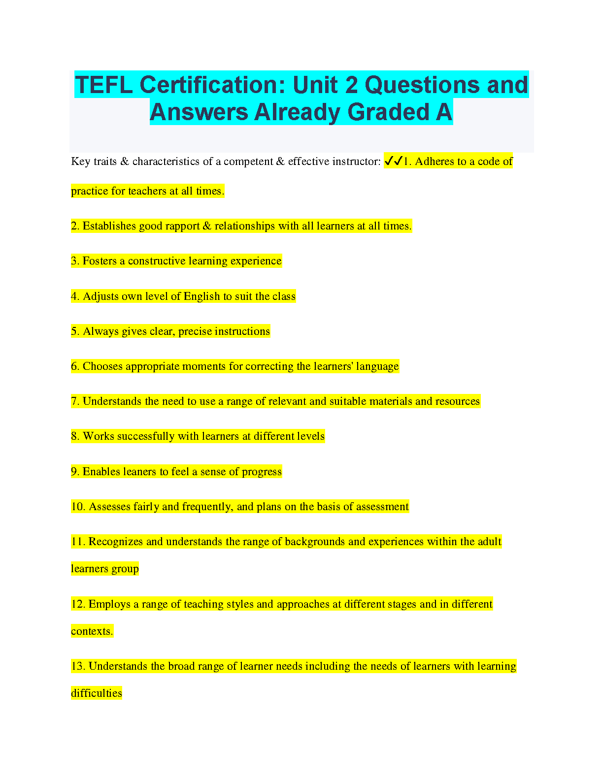 TEFL Certification: Unit 2 Questions and Answers Already Graded A