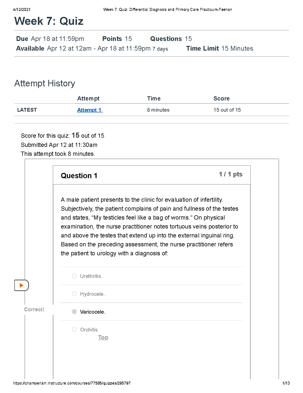Differential Diagnosis and Primary Care Practicum - Feehan 2024/2025 - Week 7 Quiz - Pass Exams on the First Attempt & Avoid Resits!