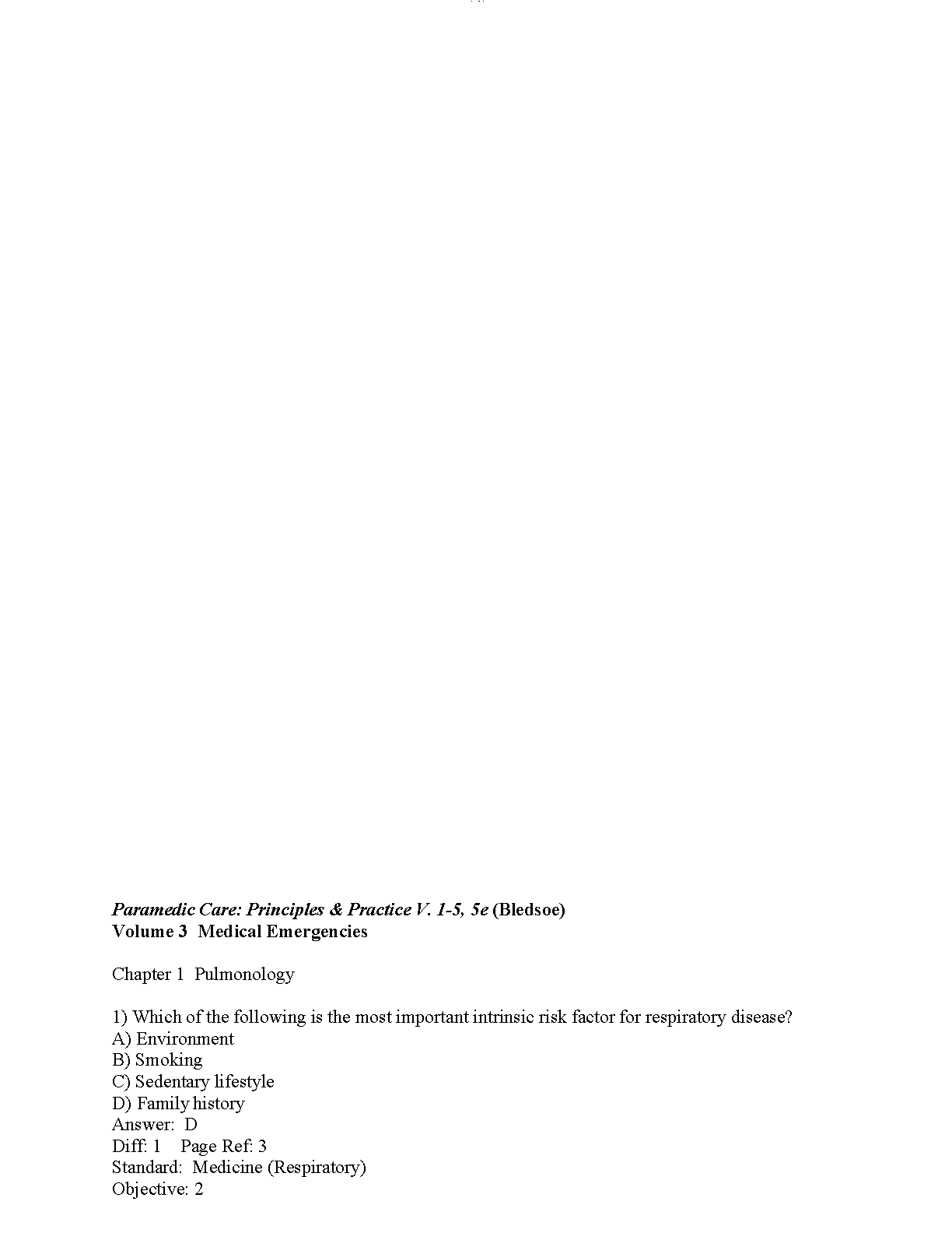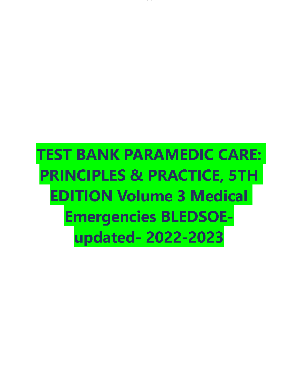 Test Bank for Paramedic Care: Principles & Practice, 5th Edition by James O. Bledsoe, Robert S. Porter, and Richard A. Cherry