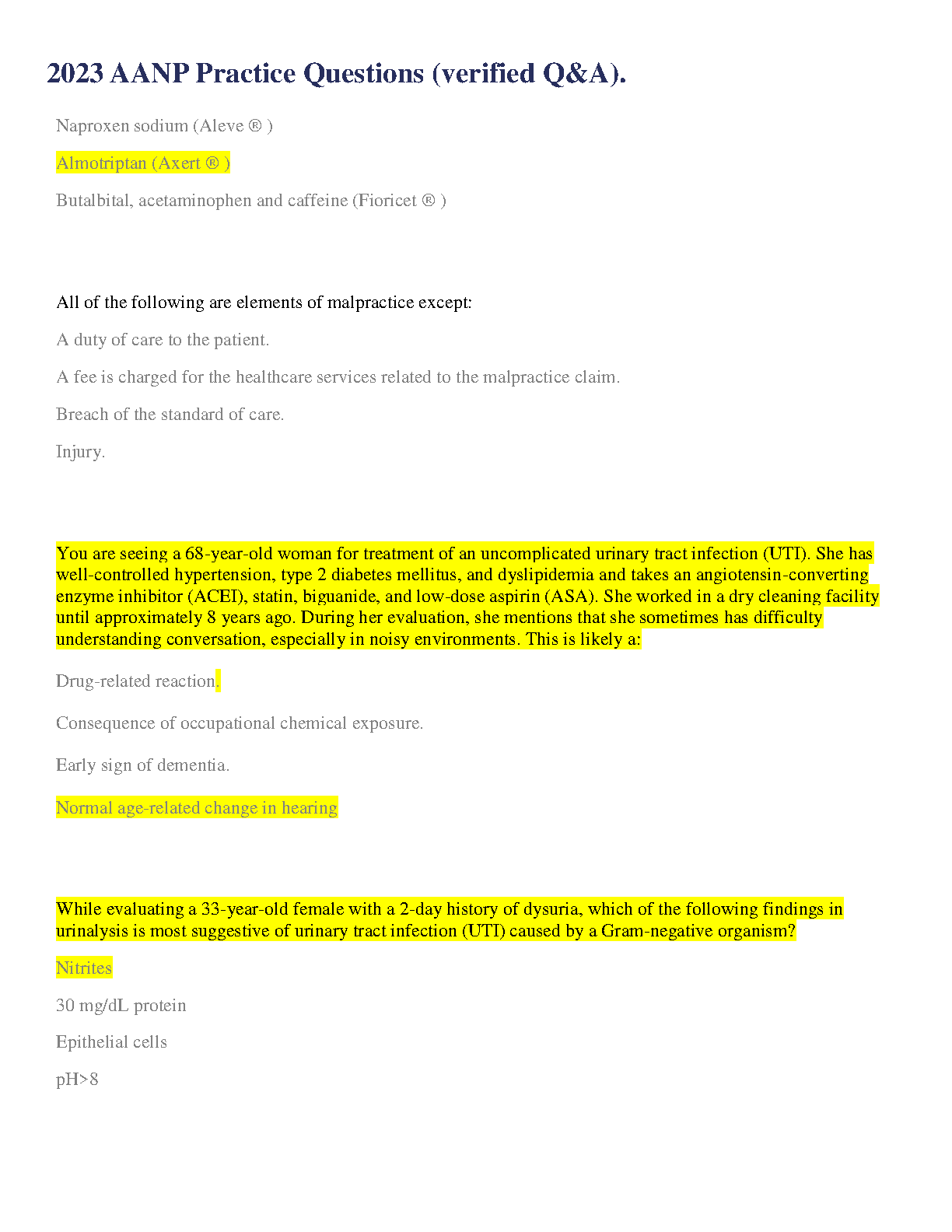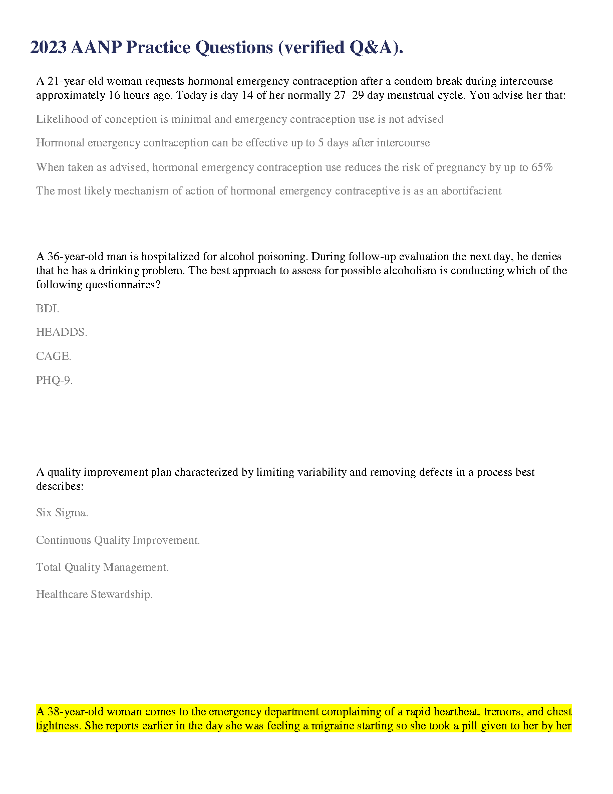 2023 AANP Practice Questions (verified Q&A) - Ace Your Exam with This Comprehensive Study Guide