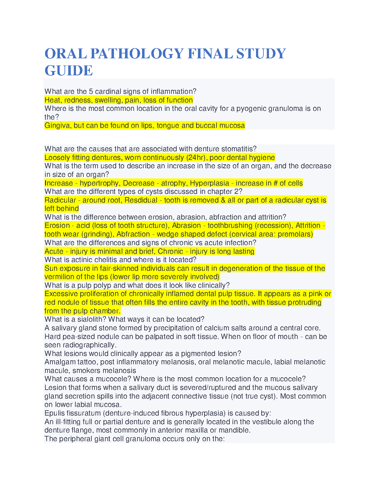 Oral Pathology Final Study Guide - Latest Edition for 2024/2025: Master the Concepts and Ace Your Exam on the First Attempt - Avoid Resits!