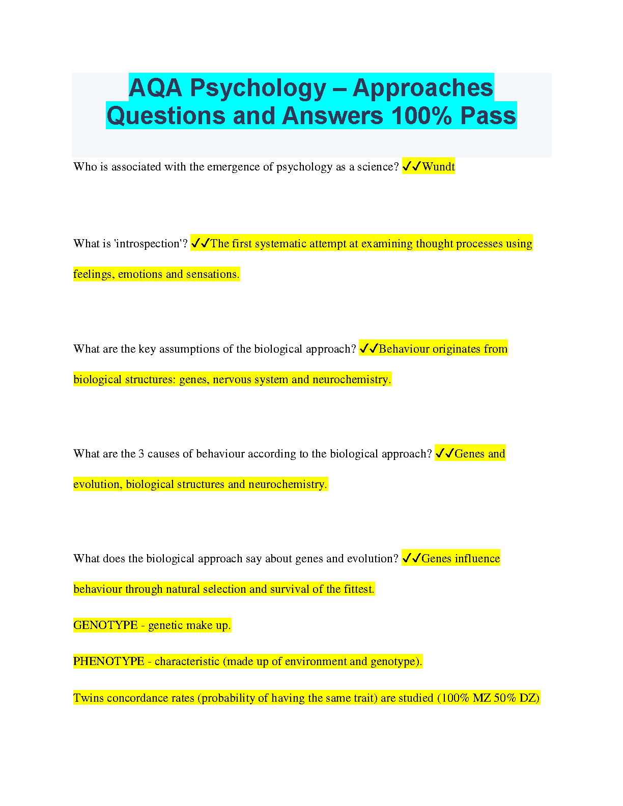 AQA Psychology - Approaches Questions and Answers 100% Pass by Authors 2024/2025 Edition