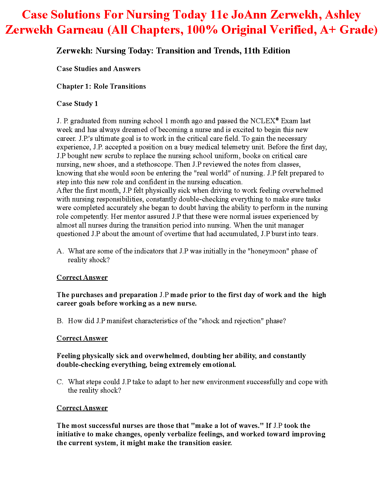 Nursing Today: Transition and Trends, 11th Edition by JoAnn Zerwekh, Ashley Zerwekh, and Garneau: Case Solutions