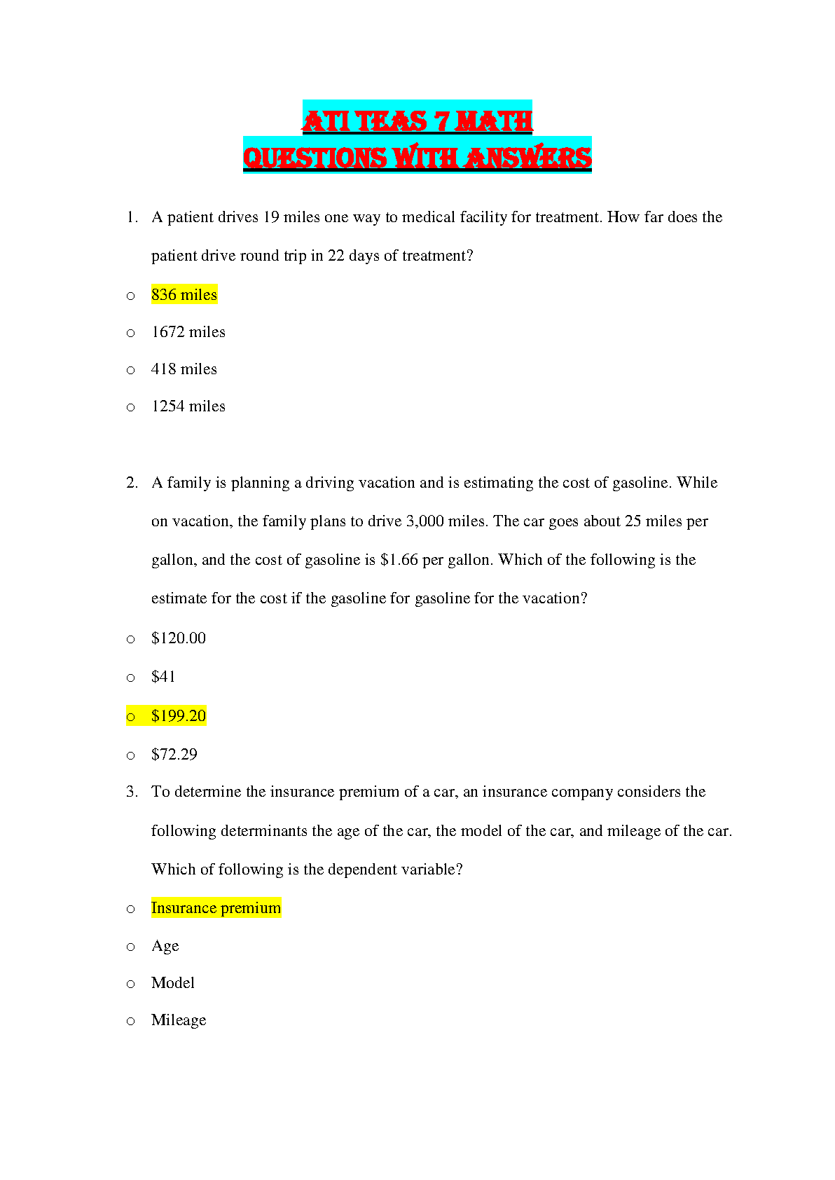 ATI TEAS 7 Math Questions With Answers 2024/2025: Ace Your Exam on the First Attempt