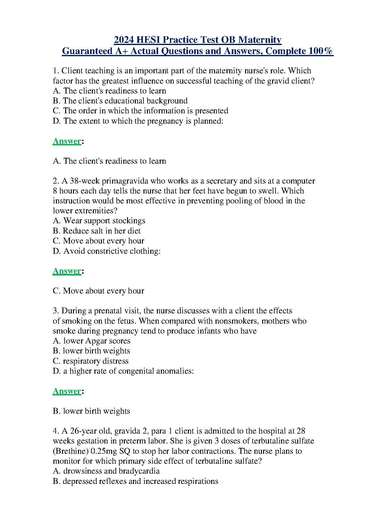 2024 HESI Practice Test OB Maternity: Guaranteed A+ Actual Questions and Answers by Linda S. Black, et al., 6th Edition