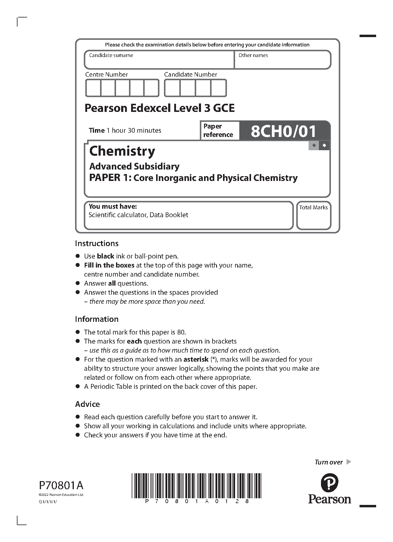 Ace your Chemistry exams on the first attempt with this comprehensive guide, tailored for the 2024/2025 academic year. Master core inorganic and physical chemistry concepts for Pearson Edexcel Level 3 GCE Advanced Subsidiary Chemistry Paper 1 (8CHO/01). Get ready to tackle the exam with confidence and avoid resits.