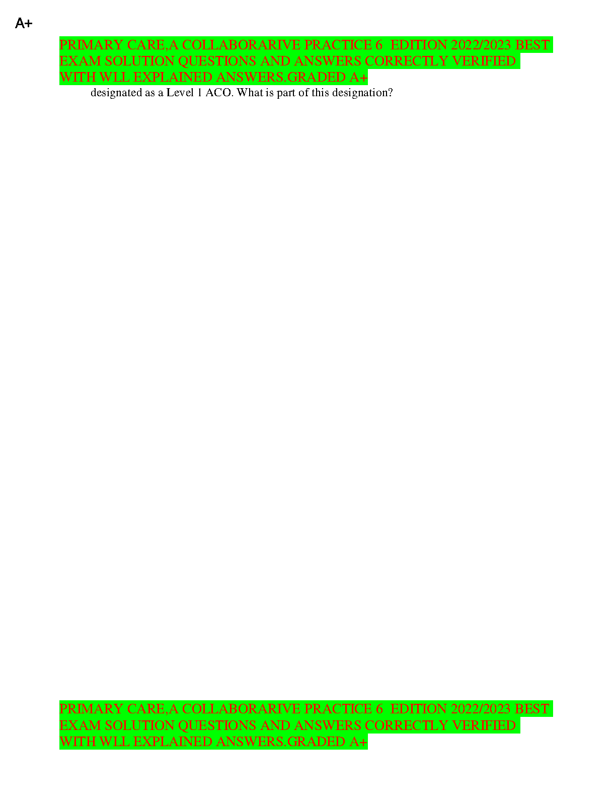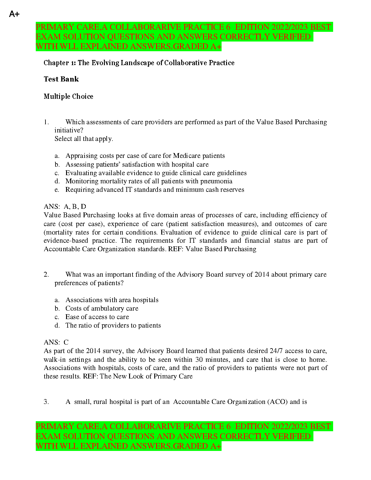 Primary Care A Collaborative Practice 6th Edition 2022/2023 by Barbara J. Gerrity, Barbara J. Gerrity and M. Louise Sullivan Exam Solution Questions and Answers Correctly Verified With Well Explained Answers Graded A+