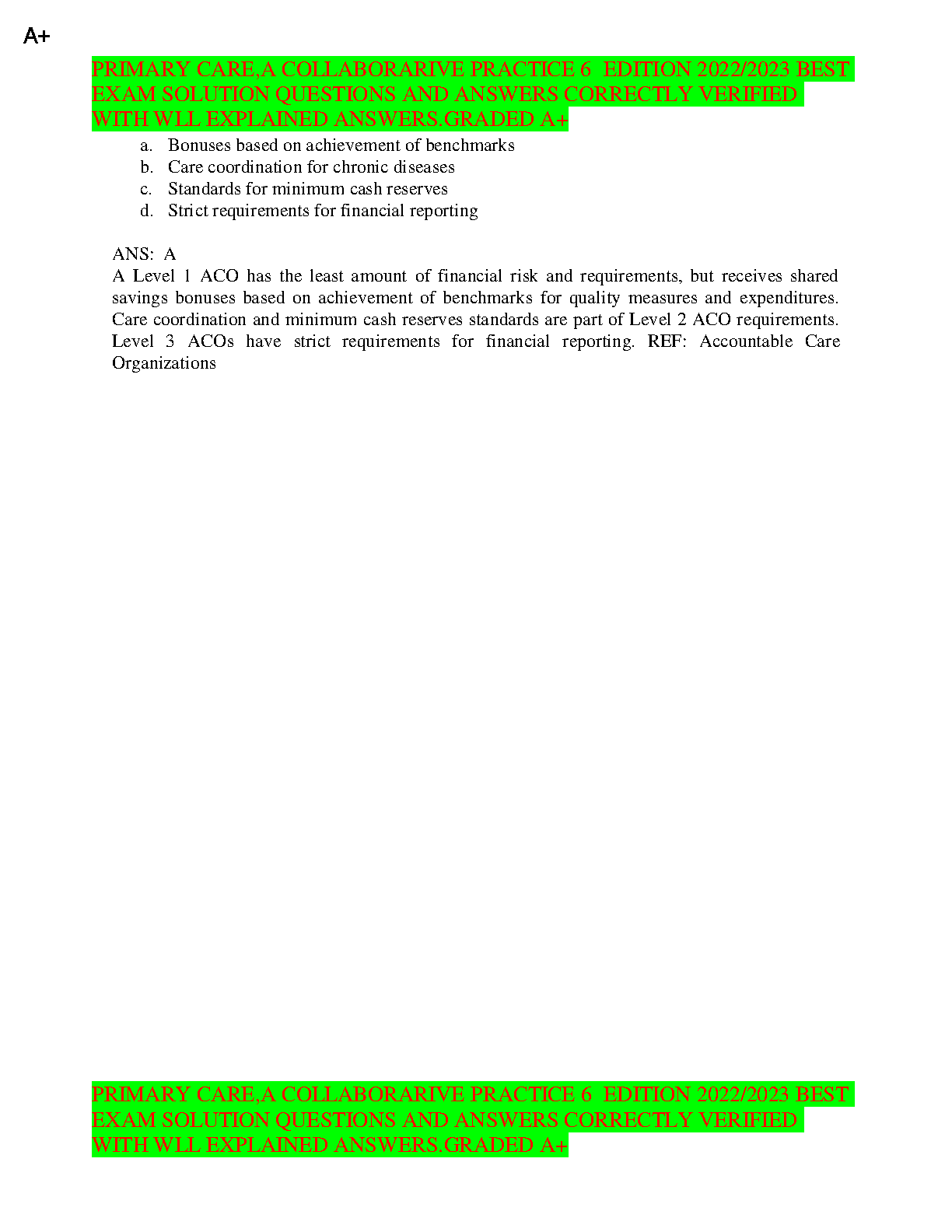 This comprehensive study guide is designed to help students excel in their primary care courses. It includes a wealth of practice questions and answers, all of which have been thoroughly reviewed and graded for accuracy. With clear explanations and detailed analysis, this resource will enhance your understanding of key concepts and equip you with the knowledge and skills needed to succeed in your exams.