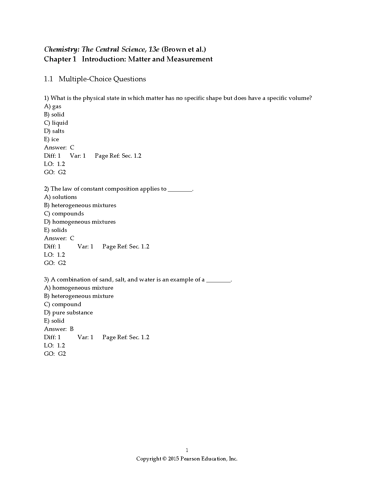 Chemistry: The Central Science, 13e (Theodore L. Brown, H. Eugine LeMay Jr., and Bruce E. Bursten) - Chapter 1 Introduction: Matter and Measurement - Multiple-Choice Questions
