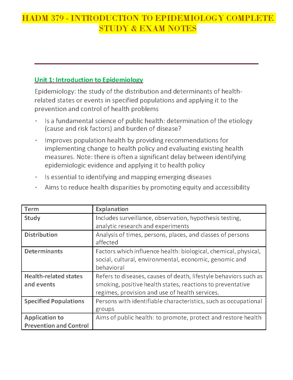 Introduction to Epidemiology Complete Study & Exam Notes for 2024/2025 - Ace Your Exams on the First Try!