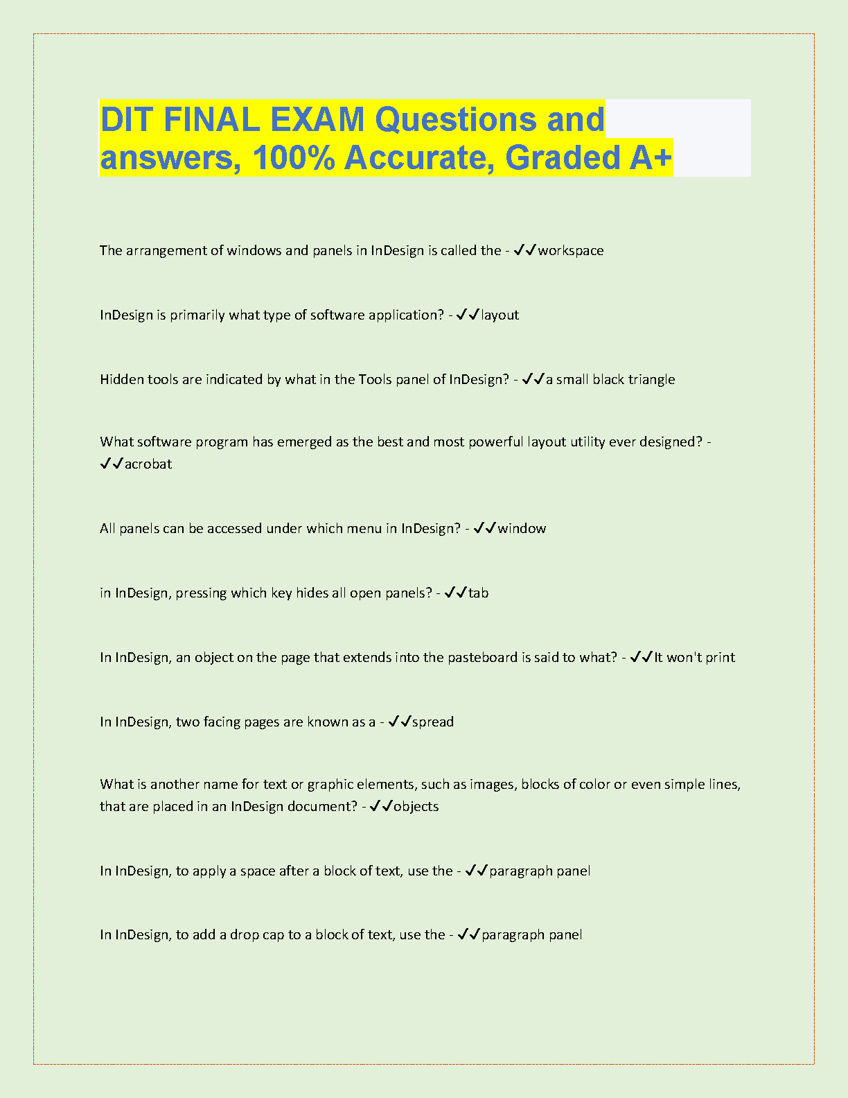 This resource contains a comprehensive set of DIT Final Exam questions and answers, meticulously crafted to ensure 100% accuracy and a guaranteed A+ grade.