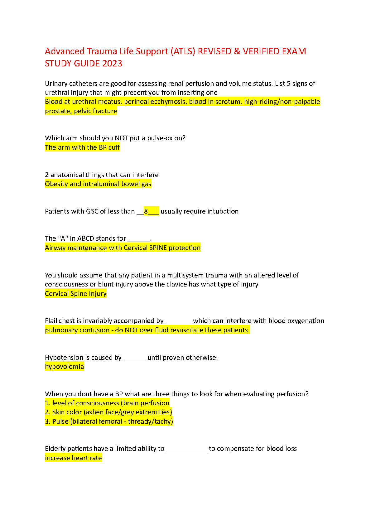 This resource provides an in-depth study guide for the Advanced Trauma Life Support (ATLS) Revised & Verified Exam. This resource has been designed to help students pass their ATLS exam on the first attempt, thus avoiding resits. Prepare yourself for success with this comprehensive guide.