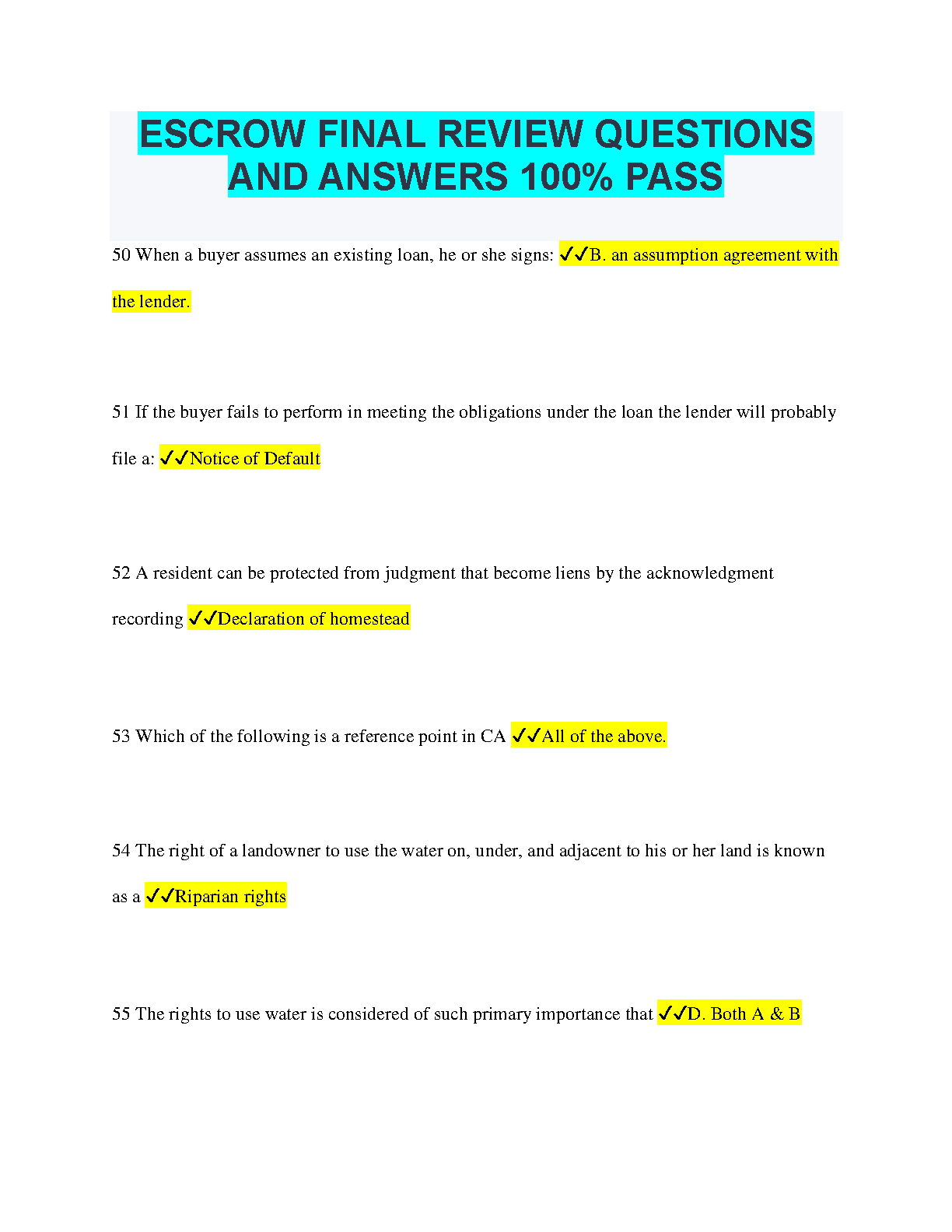 Get ready to ace your escrow exam! This comprehensive resource includes final review questions and answers covering key concepts in escrow, ensuring you pass on the first attempt.