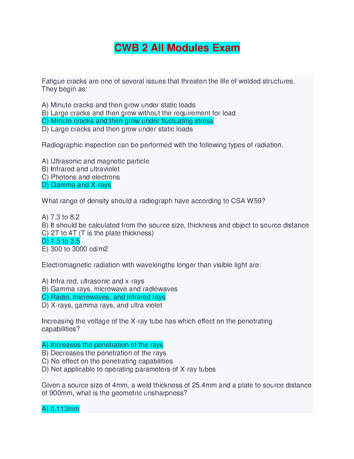 This comprehensive practice exam is designed to help you master the essential concepts covered in the CWB 2 All Modules Exam. Our team of experts has carefully crafted realistic questions to provide you with a thorough understanding of the subject matter and enhance your test-taking skills. This resource will help you achieve your desired score and avoid resits.